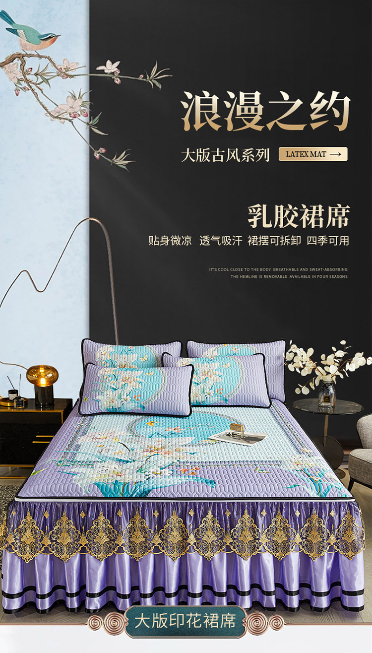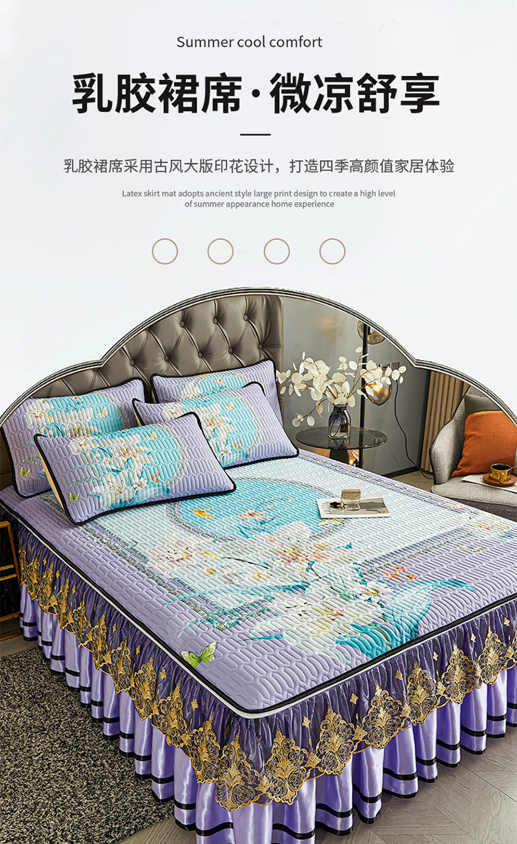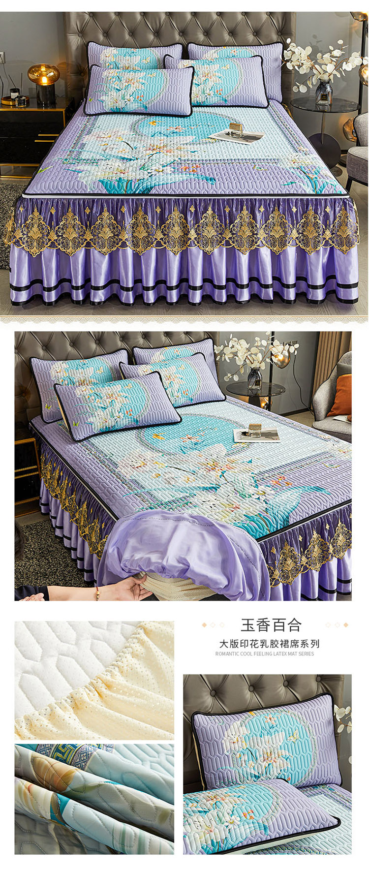 商品名称:恋尚 2023新款数码大版加厚乳胶可脱卸带床笠式床裙软席 玉香百合