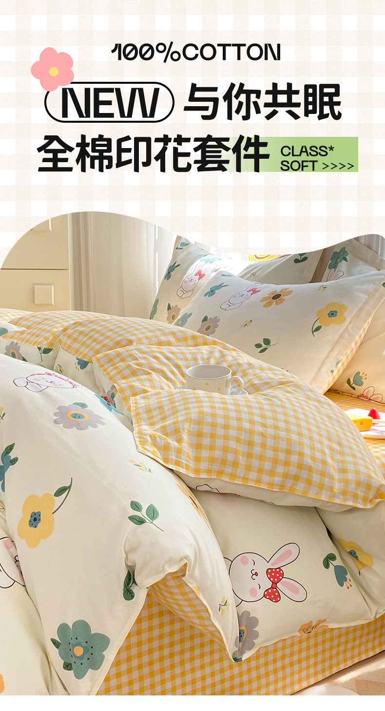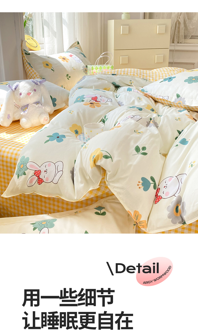 当前位置: 91家纺网 > 商品网购 > 床品套件 > 四件套 > 多品家纺 2023新款12868全棉四件套 花园小兔