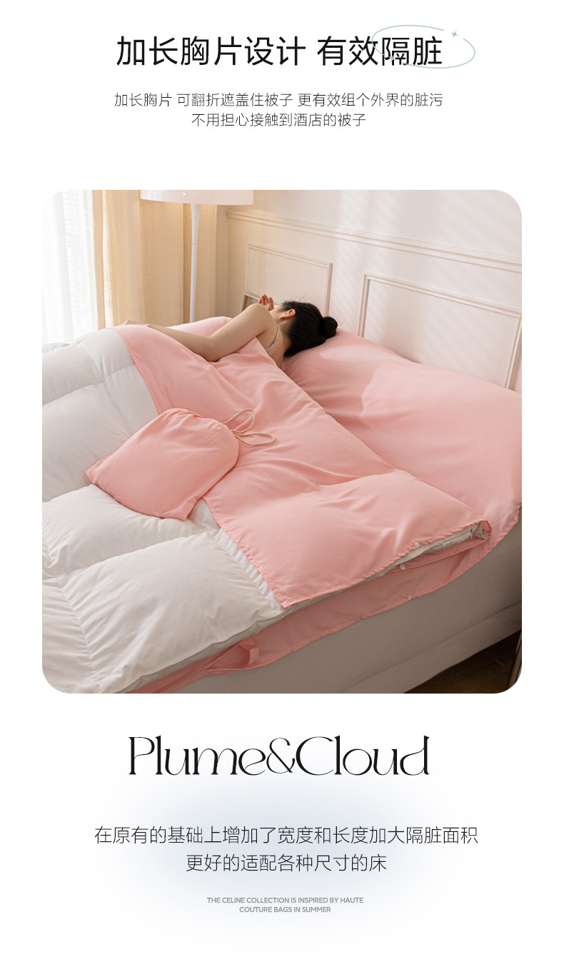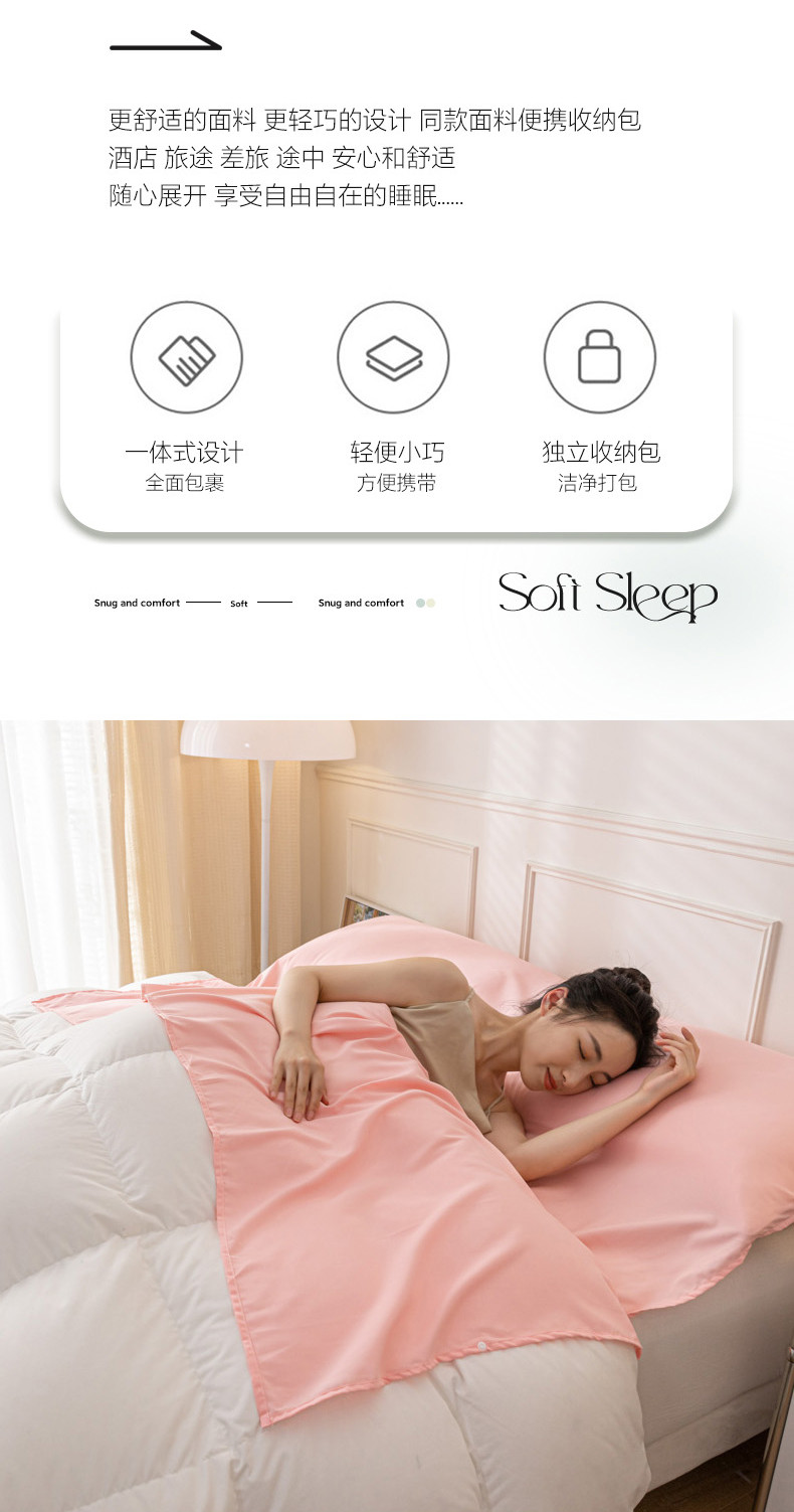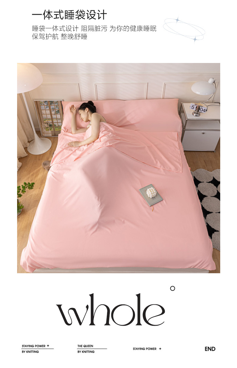 商品名称:慕澄2023新款水洗棉纯色酒店隔脏旅行睡袋 睡袋-樱花粉