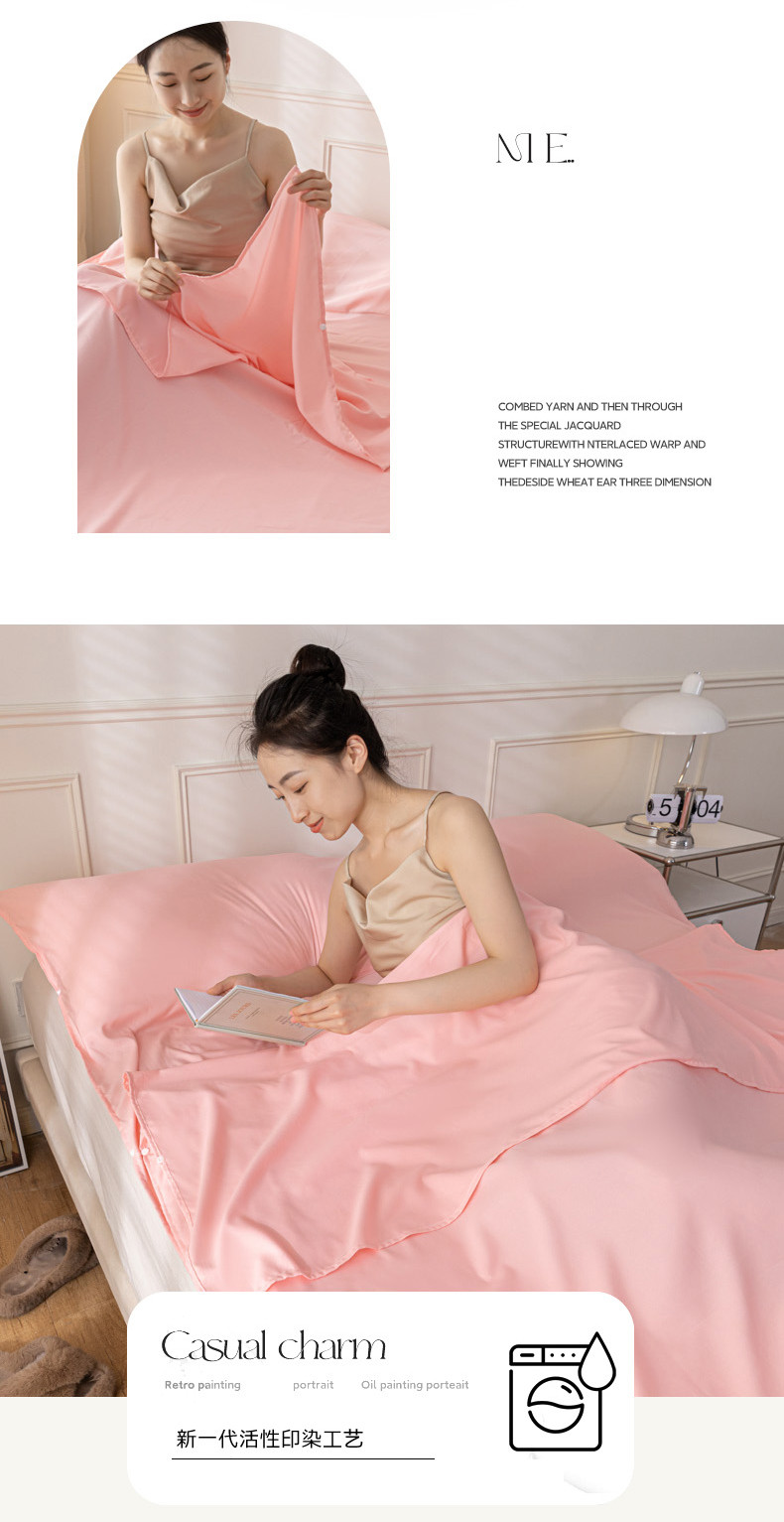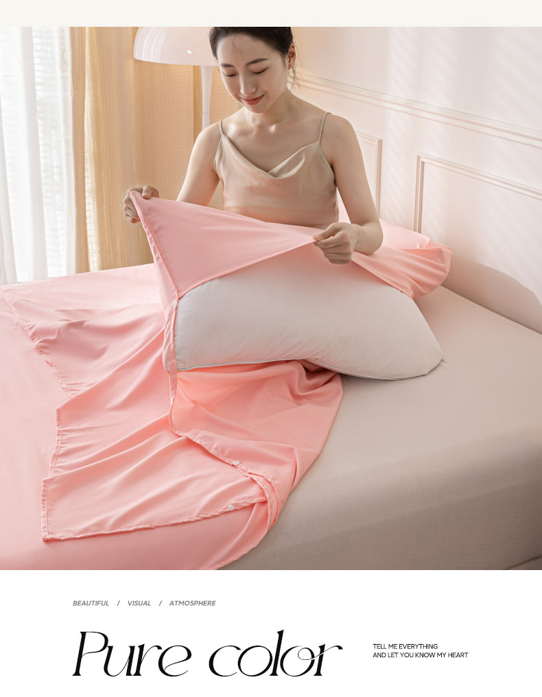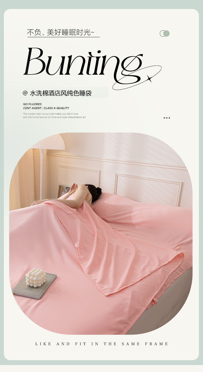 商品名称:慕澄2023新款水洗棉纯色酒店隔脏旅行睡袋 睡袋-樱花粉