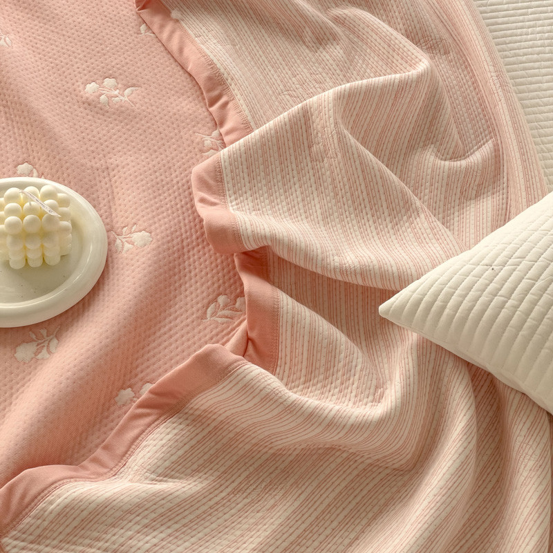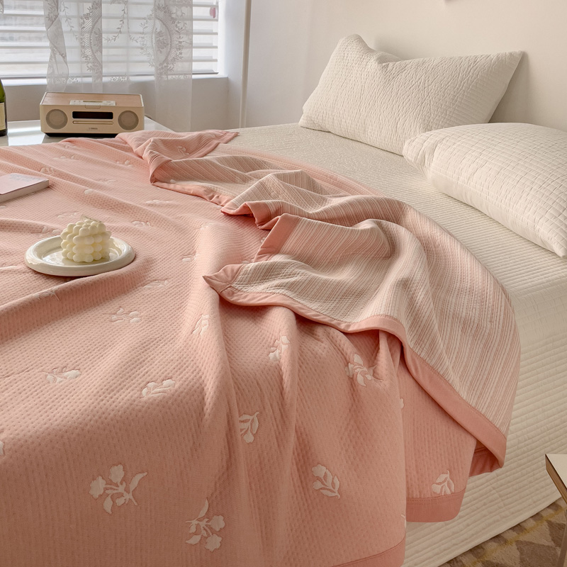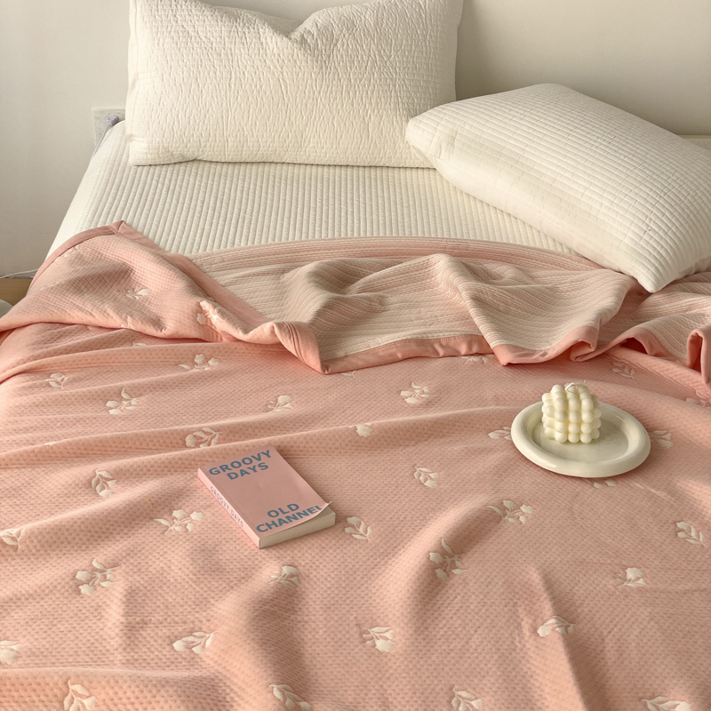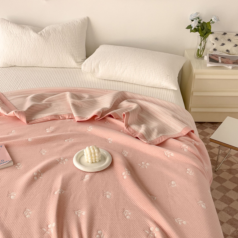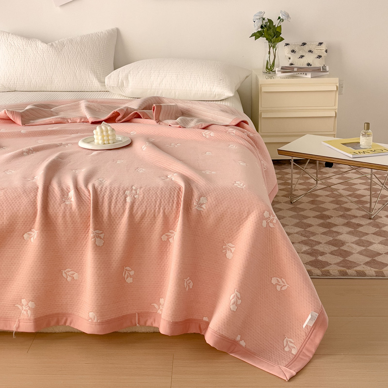 商品名称:爱丽丝 2023新款A类全棉针织提花夏被多功能盖毯 粉色铃兰