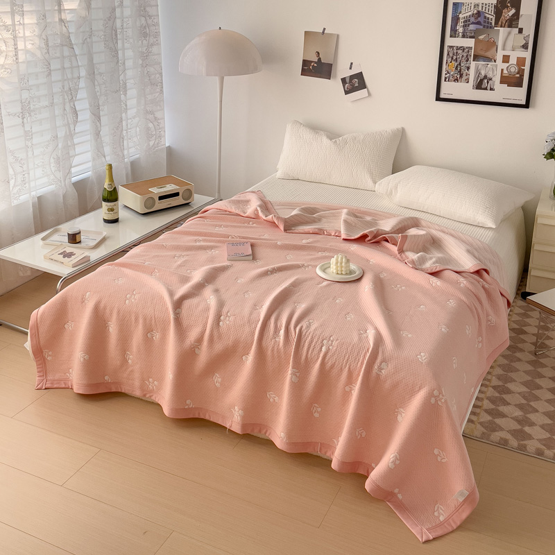 爱丽丝 2023新款A类全棉针织提花夏被多功能盖毯 粉色铃兰