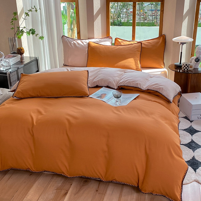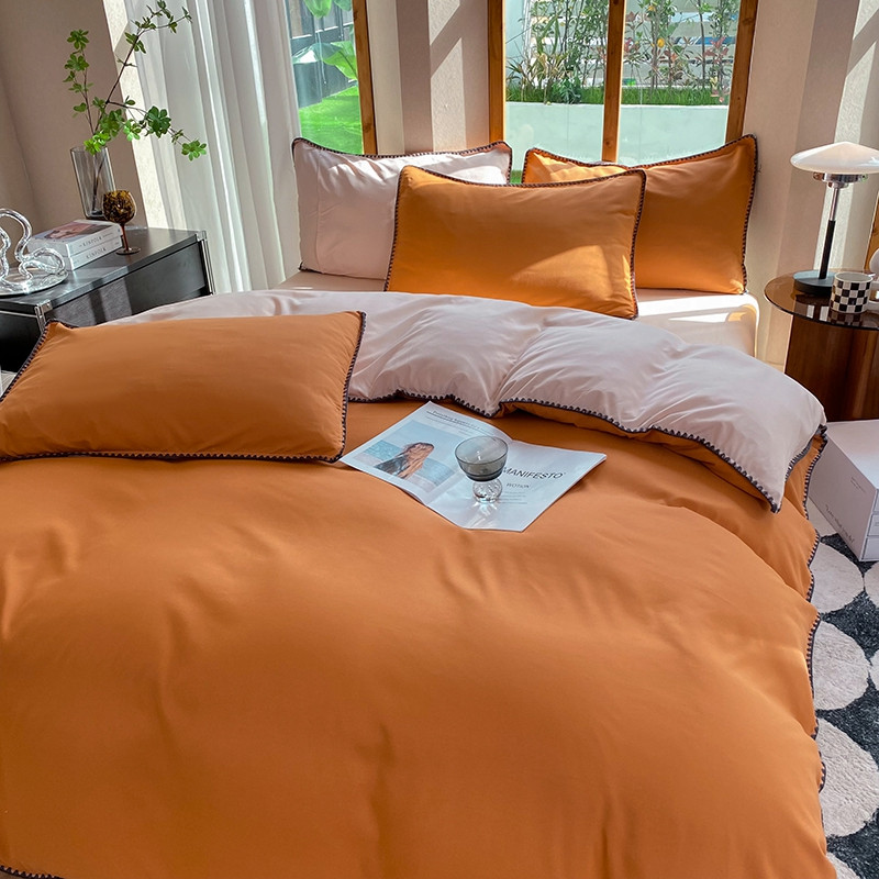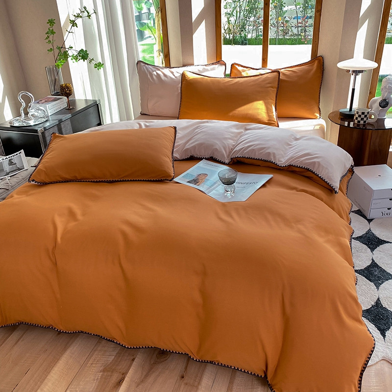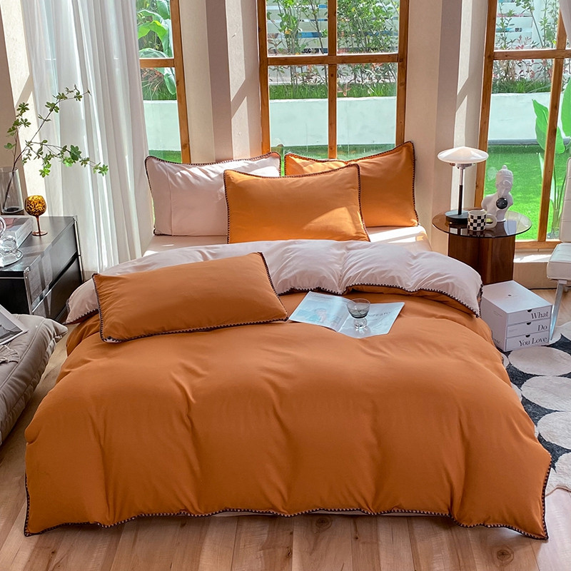 妖妖家纺 2023新款水洗棉贝壳边纯色三角针四件套 焦糖+玉