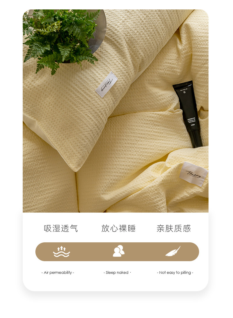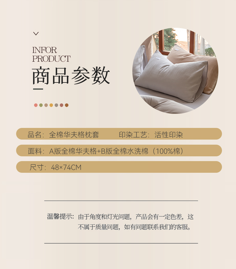 商品名称:时光里 2023新款60支全棉华夫格单品枕套 奶油白