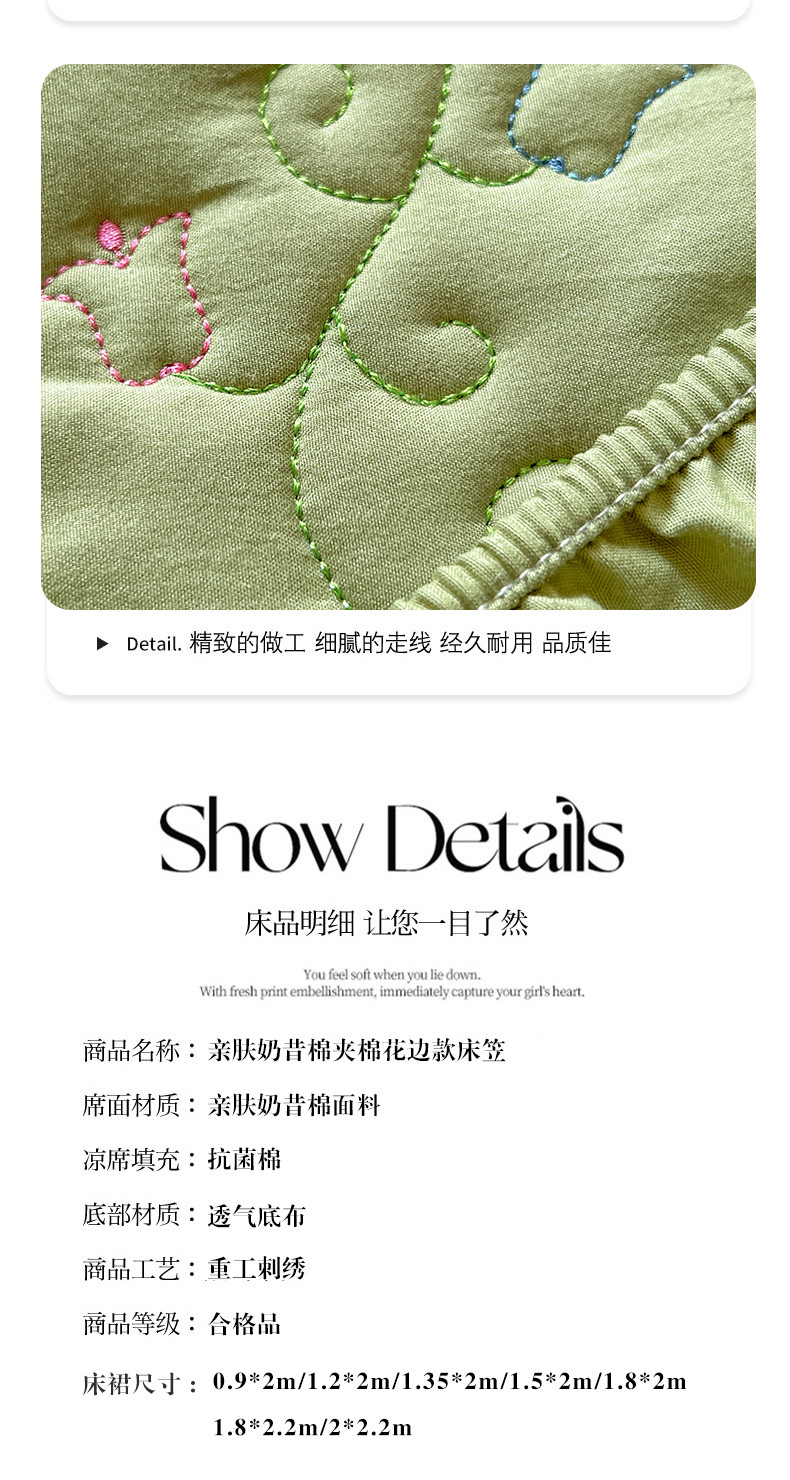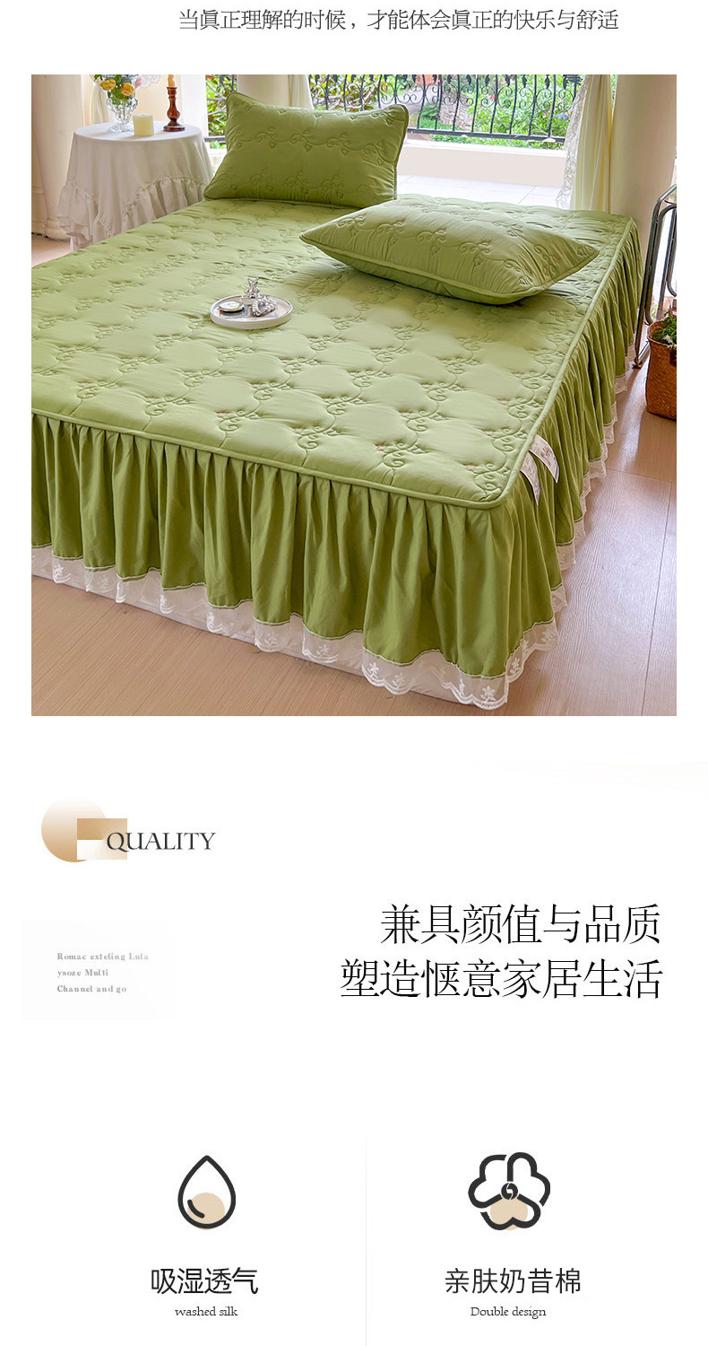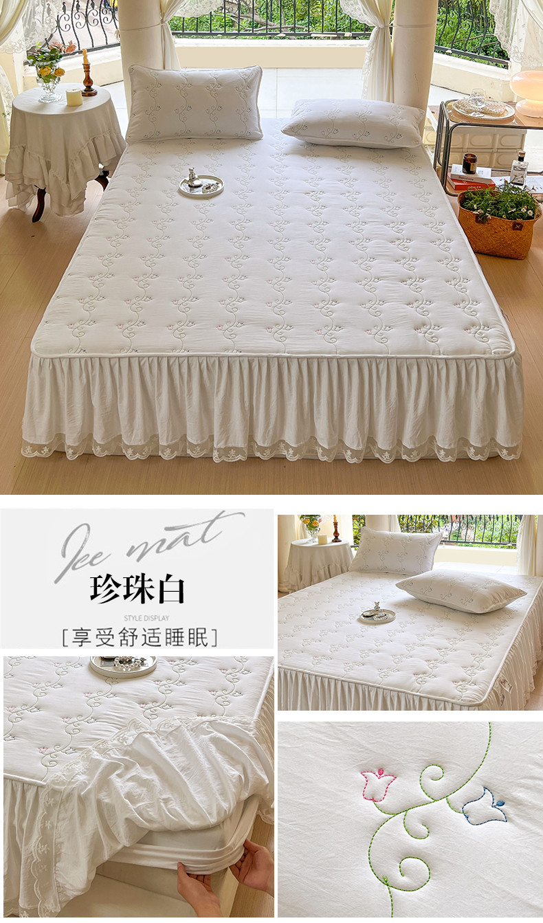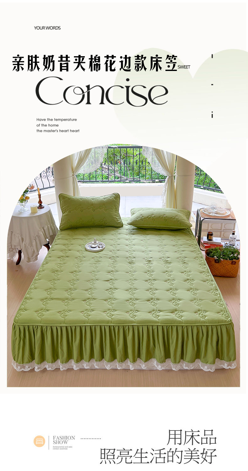 尊康家纺(原磊科) 2024新款亲肤奶昔棉夹棉床裙-风雅 风雅-奶白,风雅-奶白