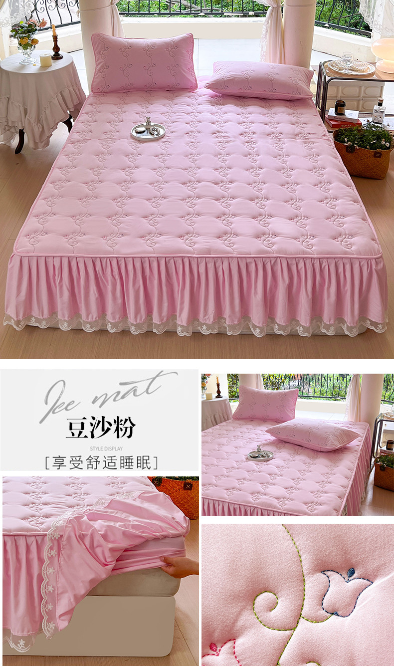 尊康家纺(原磊科) 2024新款亲肤奶昔棉夹棉床裙-风雅 风雅-黛粉,风雅-黛粉