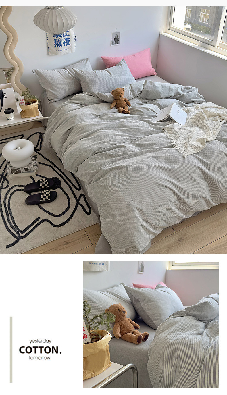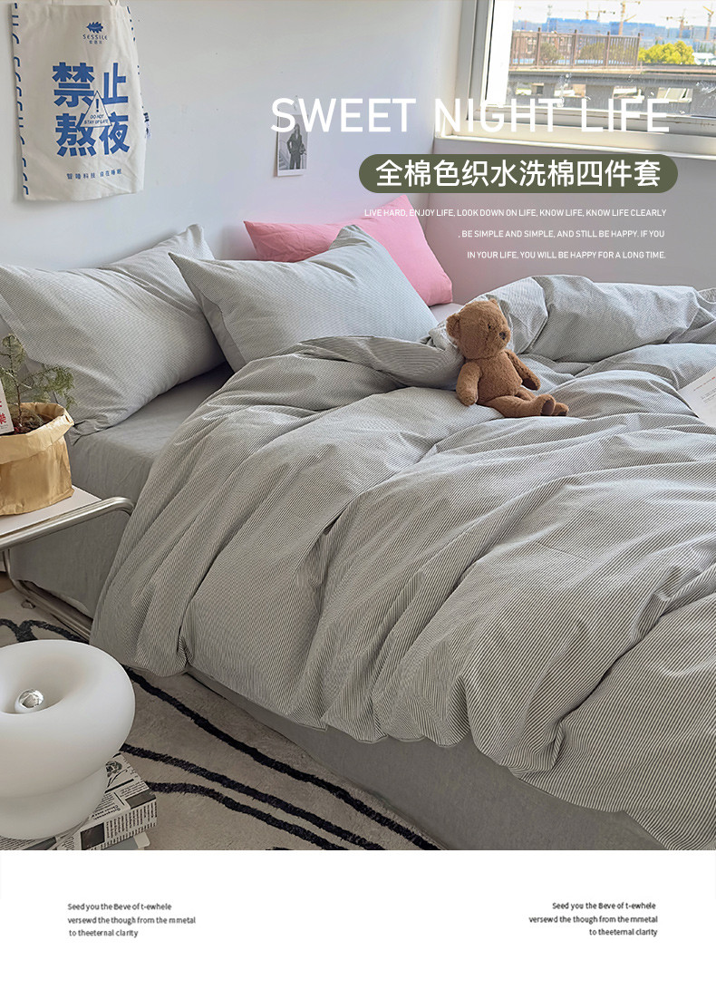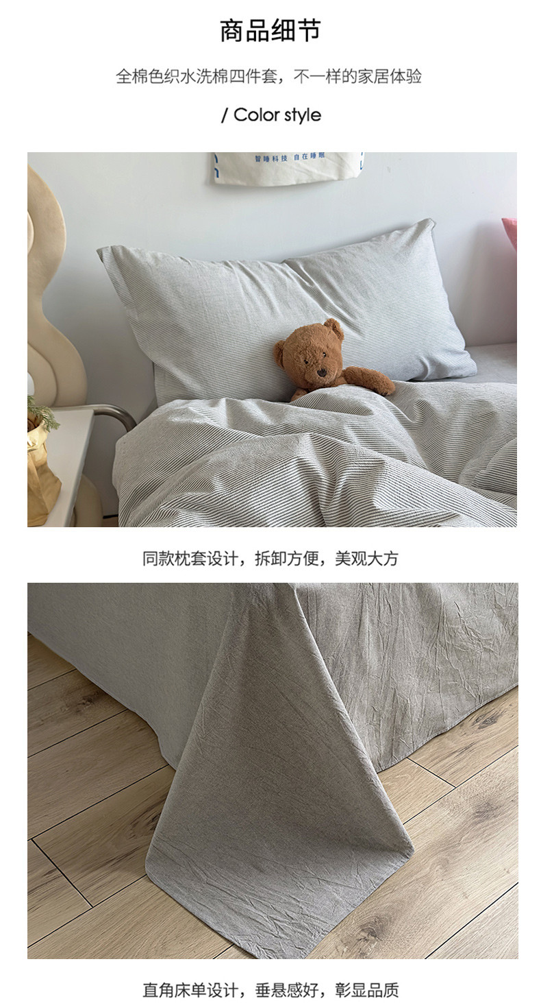 (总)2024秋冬新款A类简约日系全棉色织水洗棉纯棉四件套,粉密条,灰密条,绿密条,米密条,米雅,沐妍-粉,沐妍-黄,沐妍-灰,沐妍-绿,日落-粉,日落-灰,日落绿,中古绿条