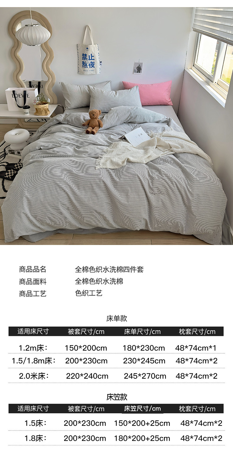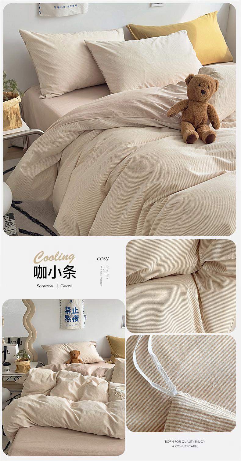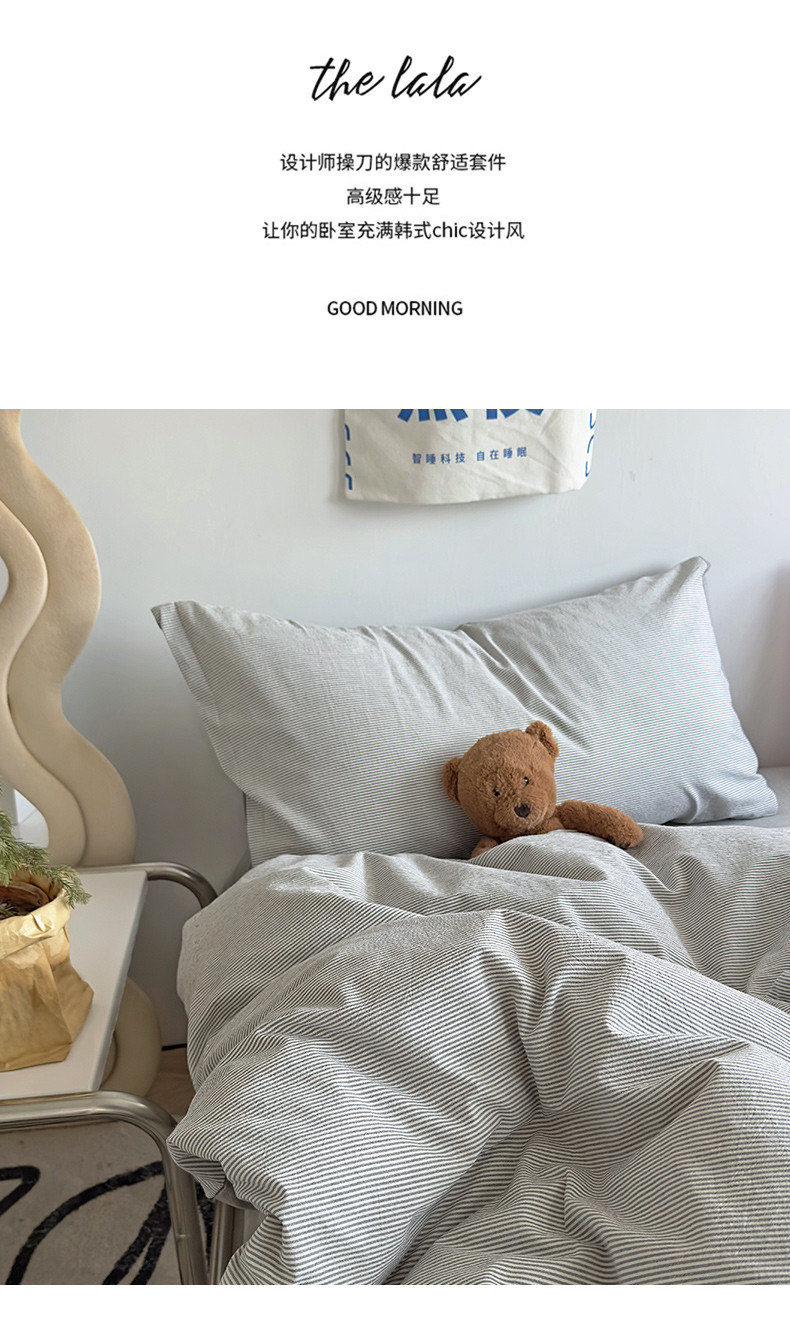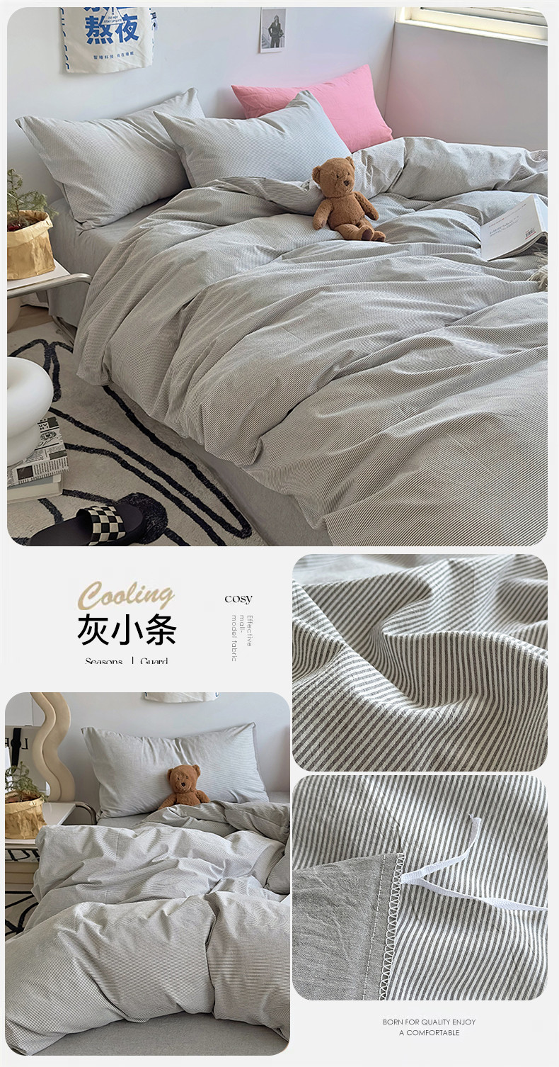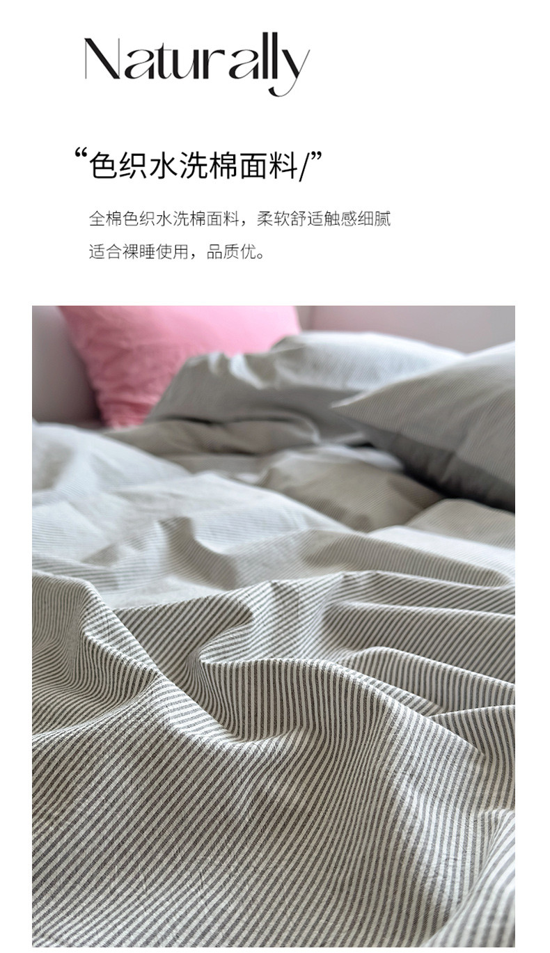 商品名称:(总)绫韵家纺 2023新款日式小条纹全棉色织水洗棉系列四件套