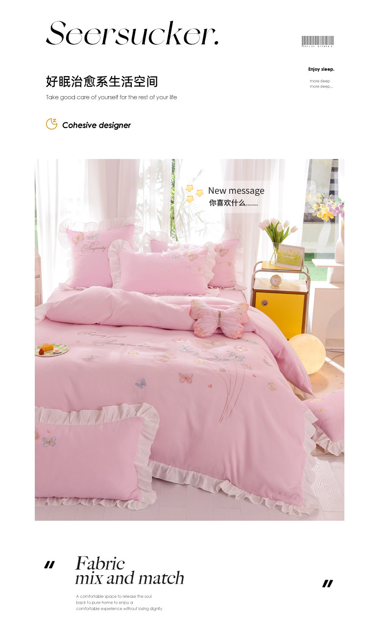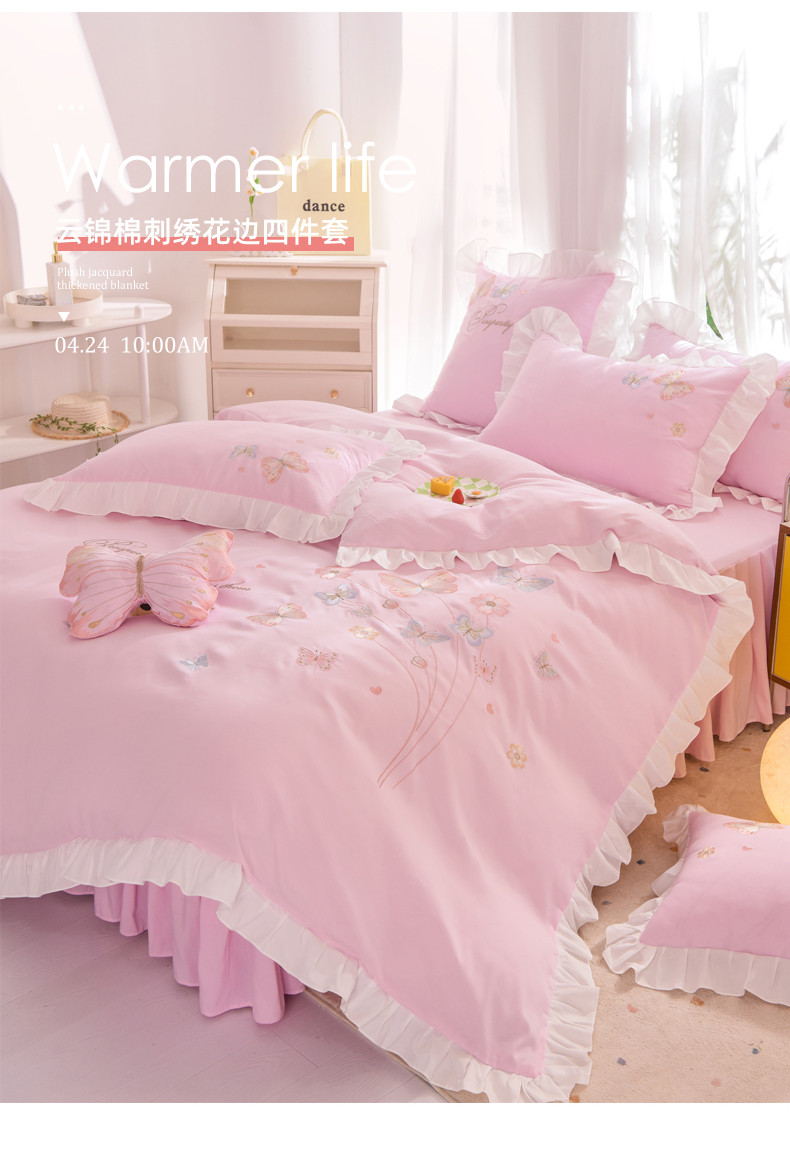 当前位置: 91家纺网 > 商品网购 > 床品套件 > 四件套 > 全棉普通四件套 > 丝印良品 2023新款云锦棉春卉四件套系列 春卉-粉色