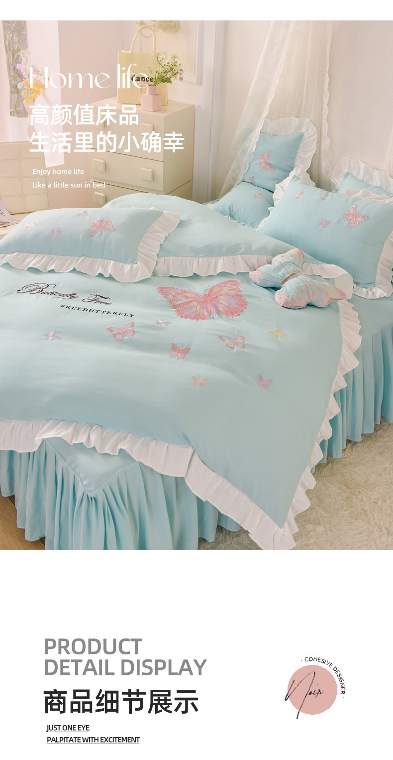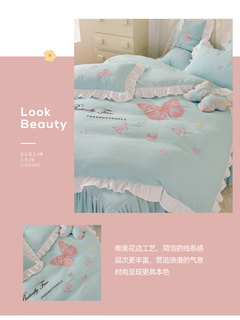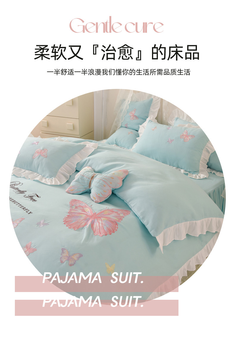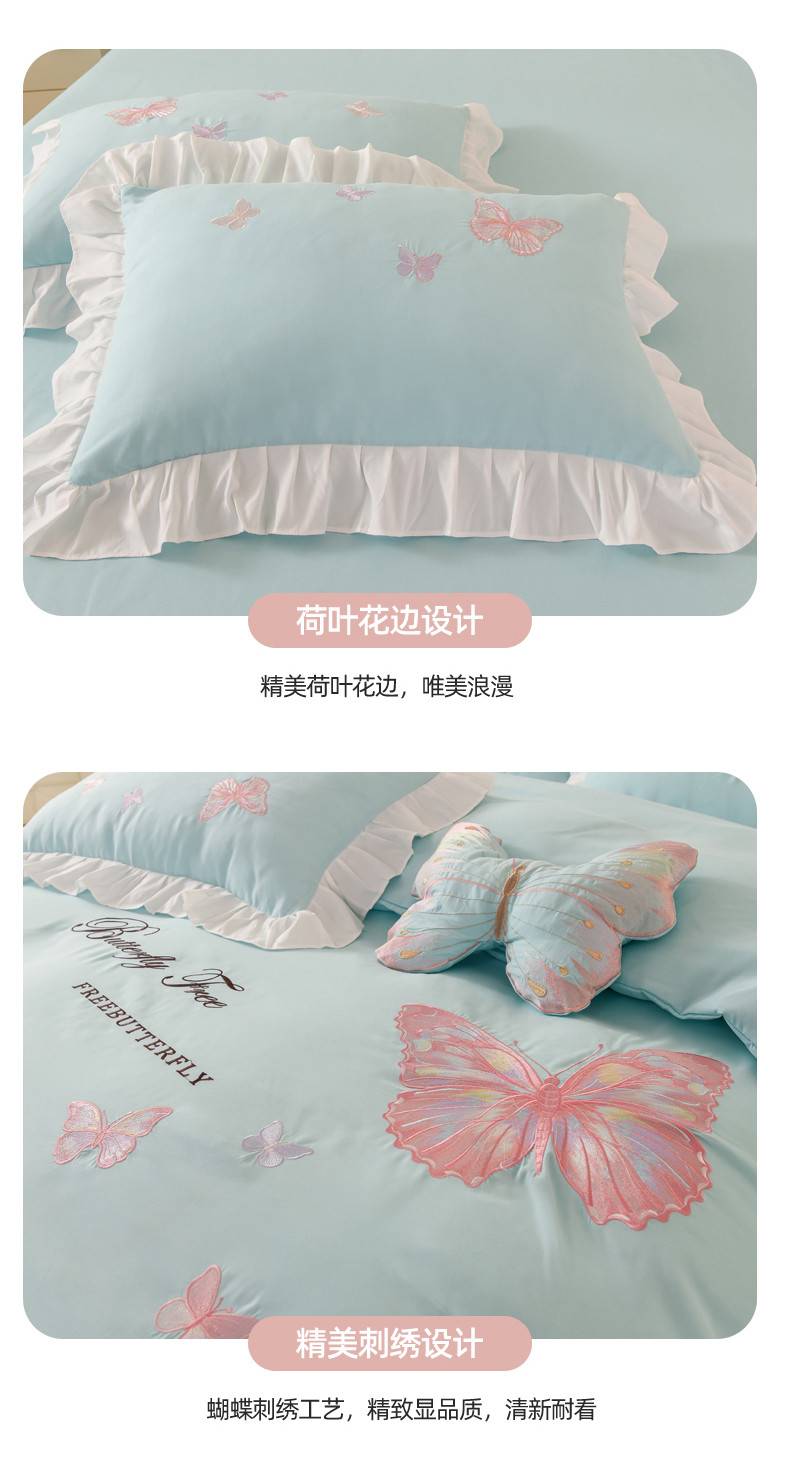 当前位置: 91家纺网 > 商品网购 > 床品套件 > 四件套 > 全棉普通四件套 > 丝印良品 2023新款云锦棉刺绣花边羽蝶系列四件套 羽蝶-碧绿