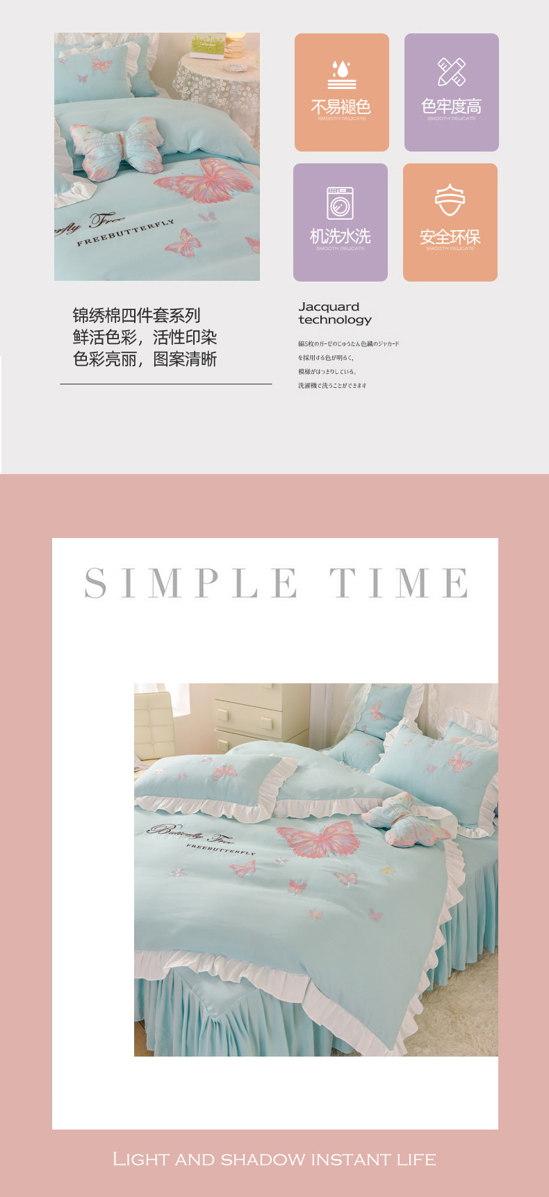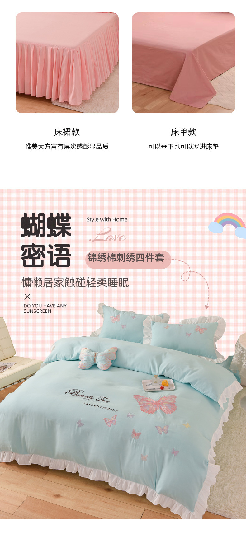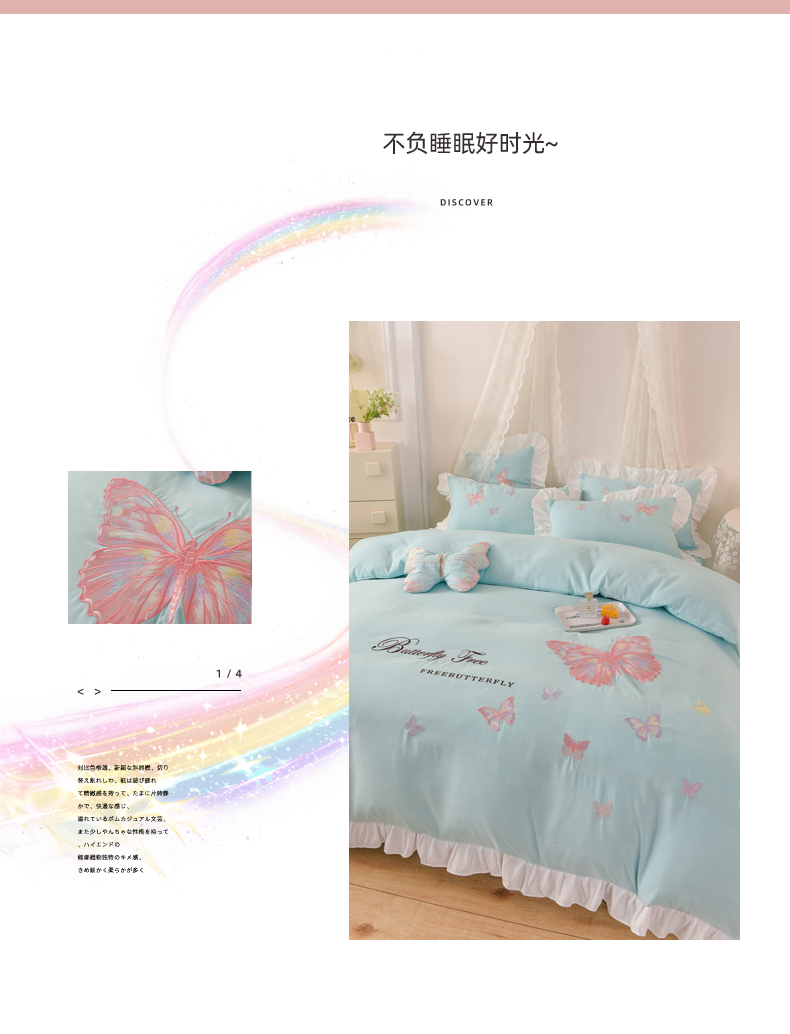 当前位置: 91家纺网 > 商品网购 > 床品套件 > 四件套 > 全棉普通四件套 > 丝印良品 2023新款云锦棉刺绣花边羽蝶系列四件套 羽蝶-碧绿
