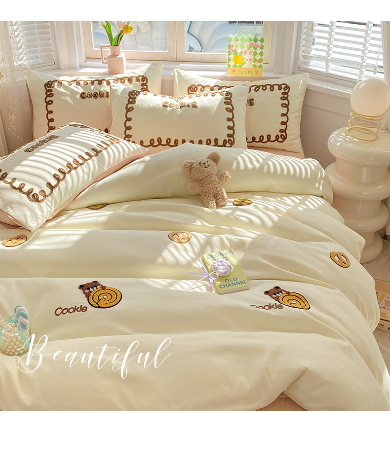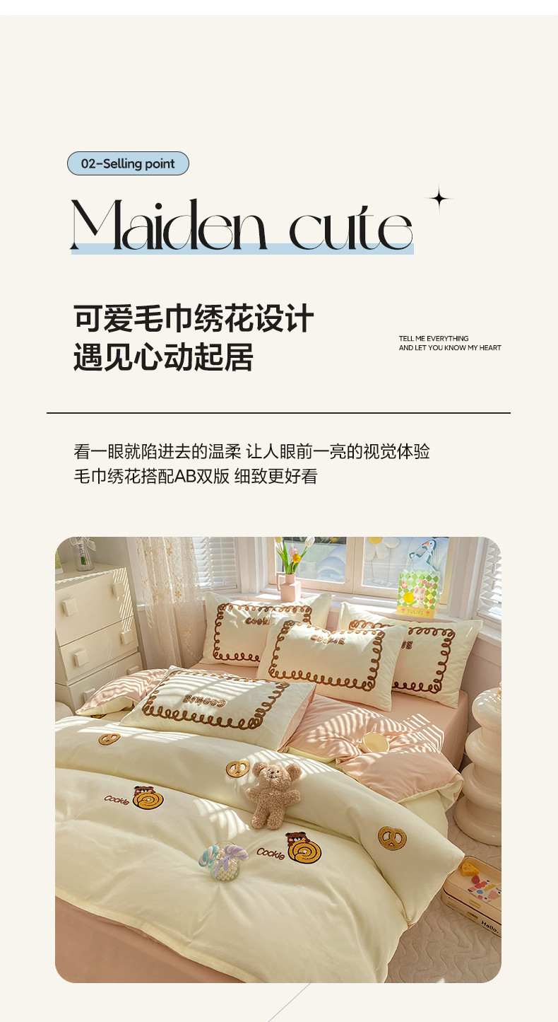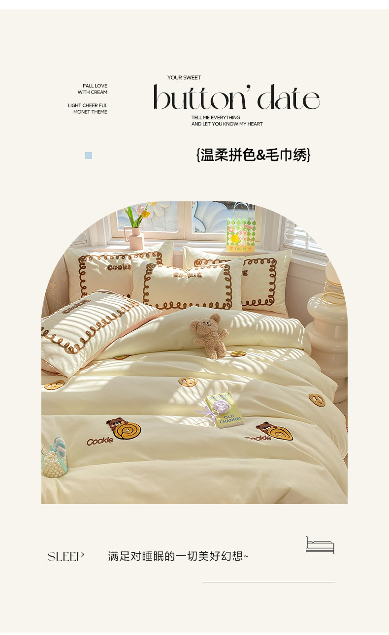 商品名称:丝印良品 2023新款专版水洗棉麻毛巾绣四件套 曲奇