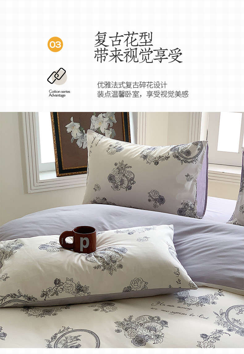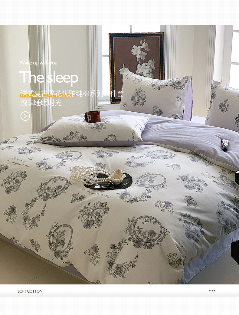 桃子 2023新款法式复古碎花优雅纯棉系列四件套-场景二 棉-法式浪漫
