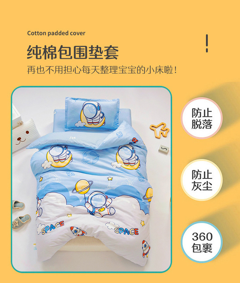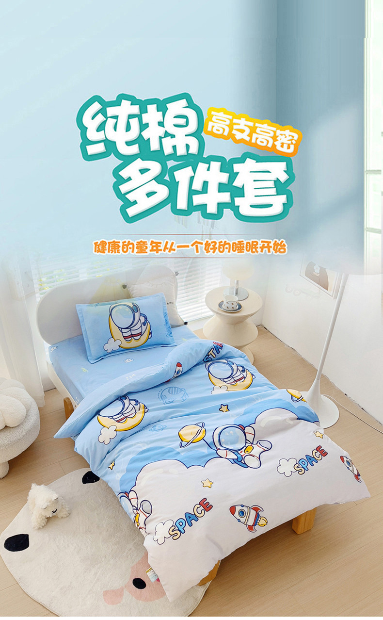 (总)芭伯妮2025AB版全棉幼儿园三件套儿童被子套件六件套,恐龙家族-绿,彩虹喵,可乐贝儿,蜡笔画,嘉年华,守望麦田,汽车乐园,太空旅行,甜蜜时光,欢乐萌熊,雪芙奶糕,白桃公主,宝宝巴士-米,动漫恐龙-米,活力恐龙,野餐派对,快乐太空舱,萌龙探险,探索星球,星夜号,遨游太空,淘气喵,恐龙漫步,爱丽丝音乐会, 爱心喵,度假恐龙,蓝星绮梦,瑞迪熊, 太空卫士, 甜心猫咪