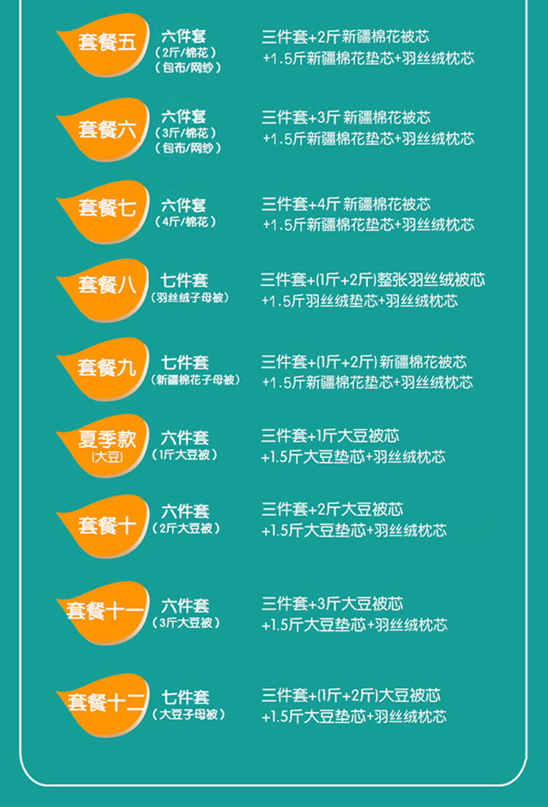 1斤羽丝绒六件套(夏季款)