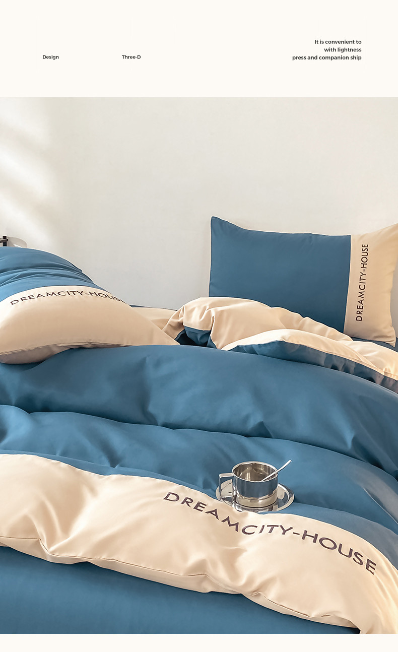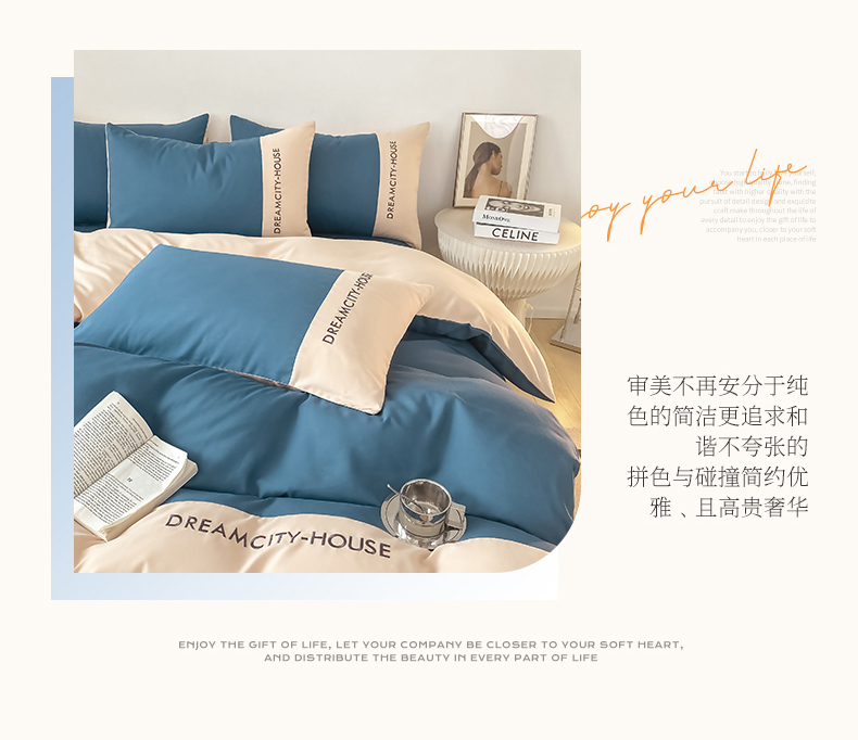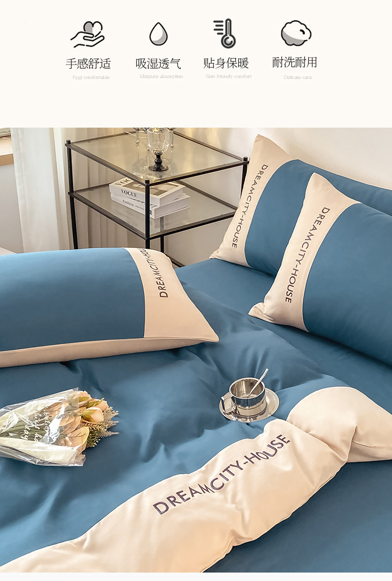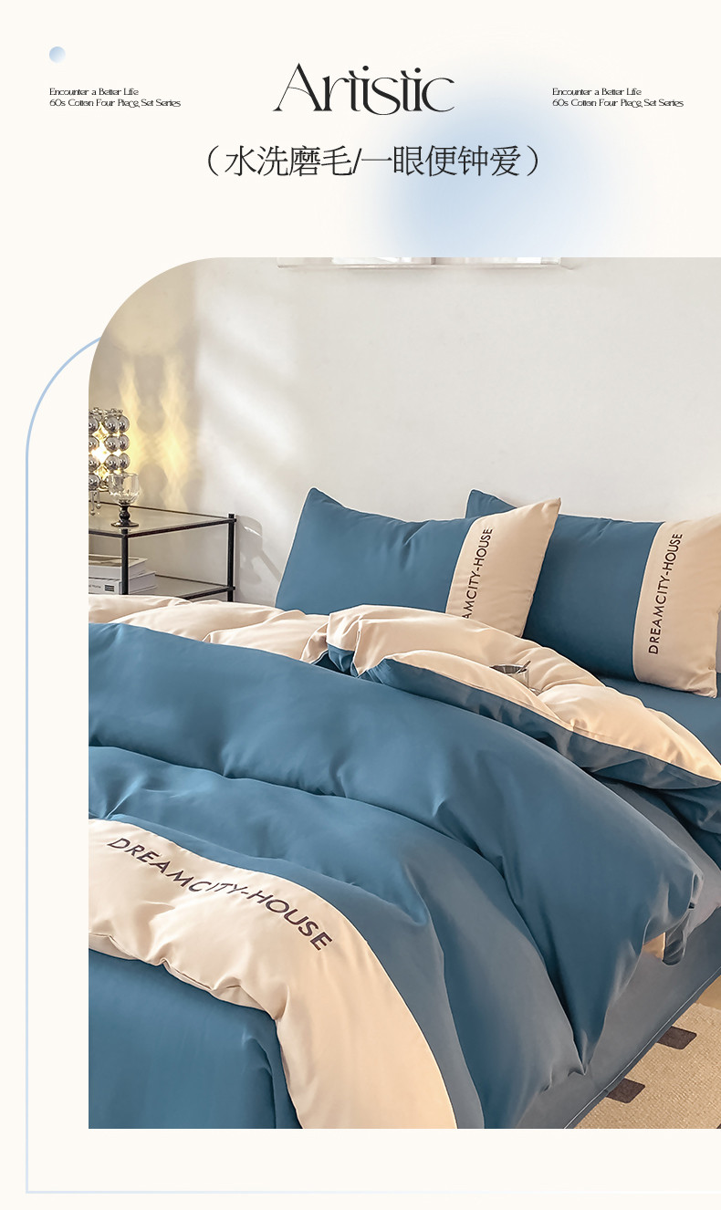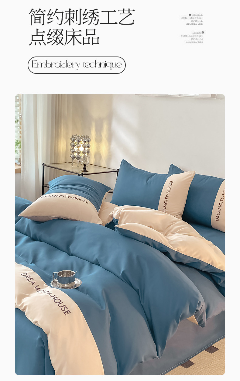 当前位置: 91家纺网 > 商品网购 > 床品套件 > 四件套 > 普通磨毛四件套 > 盛秋家纺 2025新款思雅系列水洗磨毛双拼刺绣四件套 思雅-宾利蓝+梧桐杏