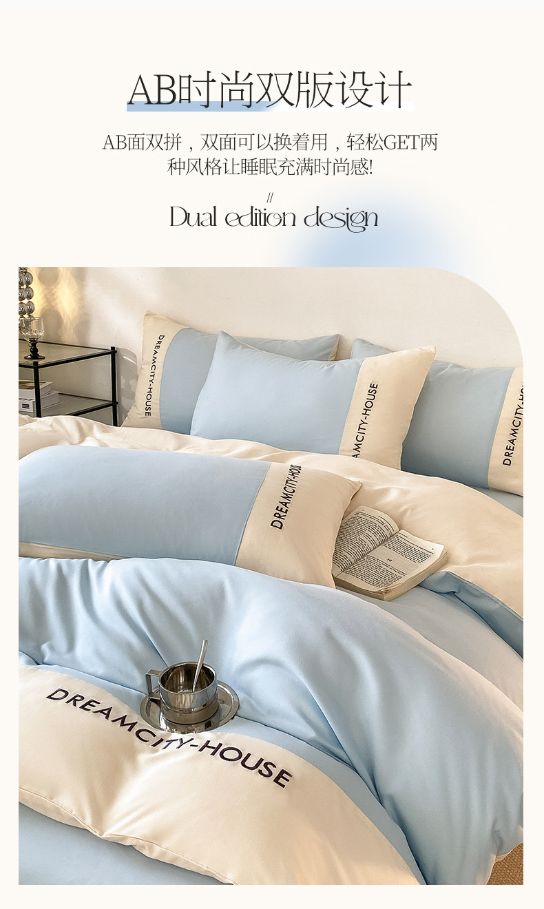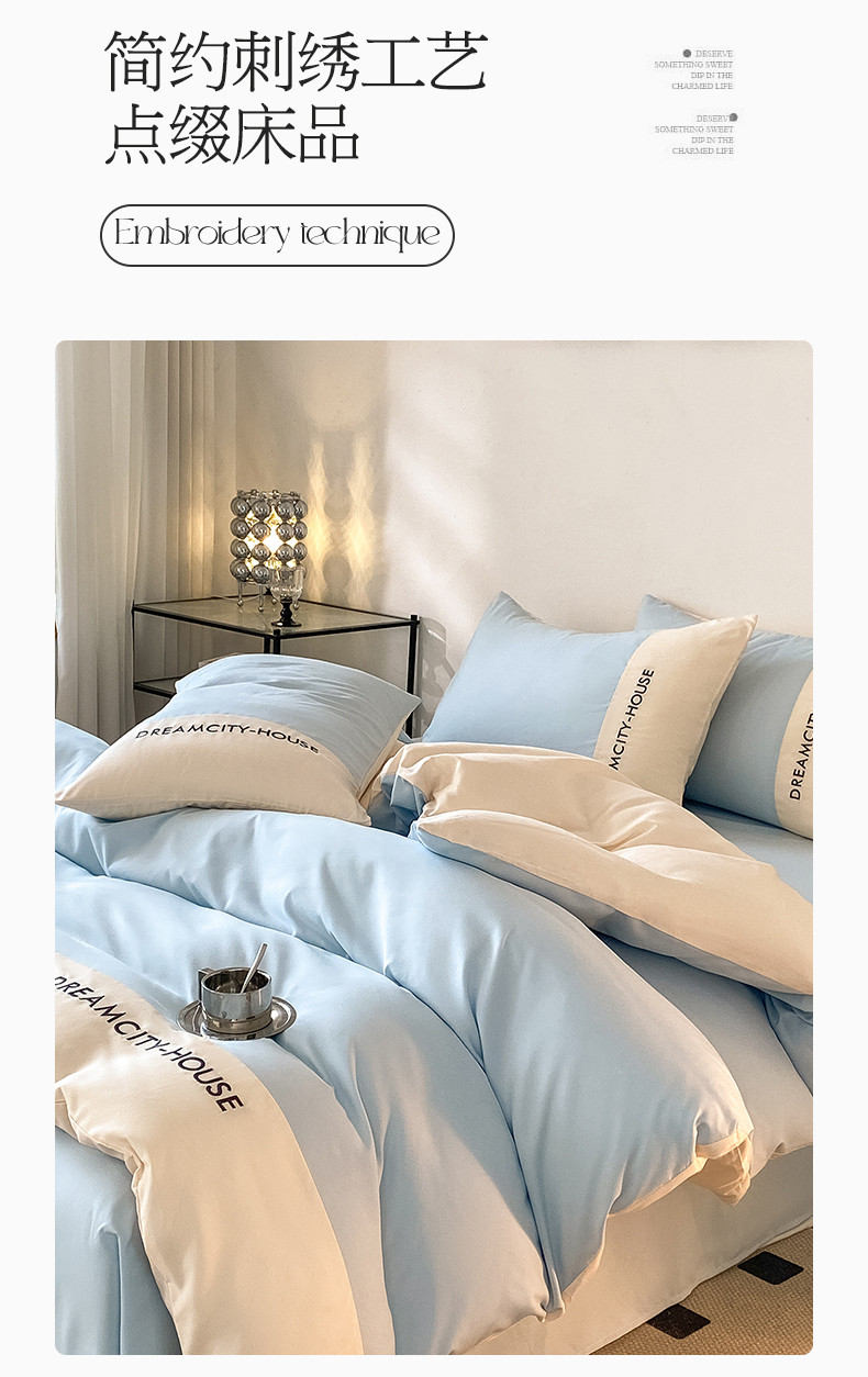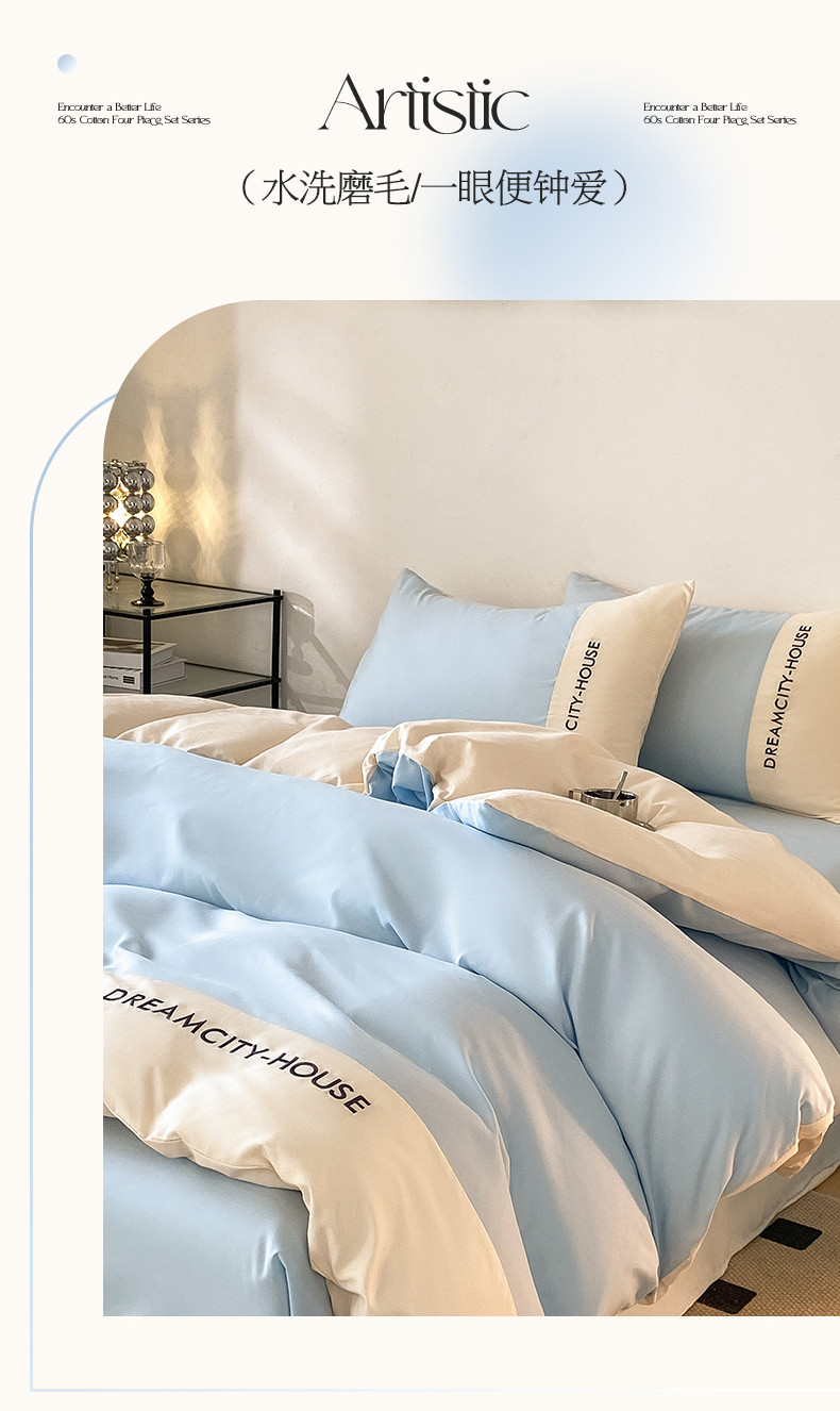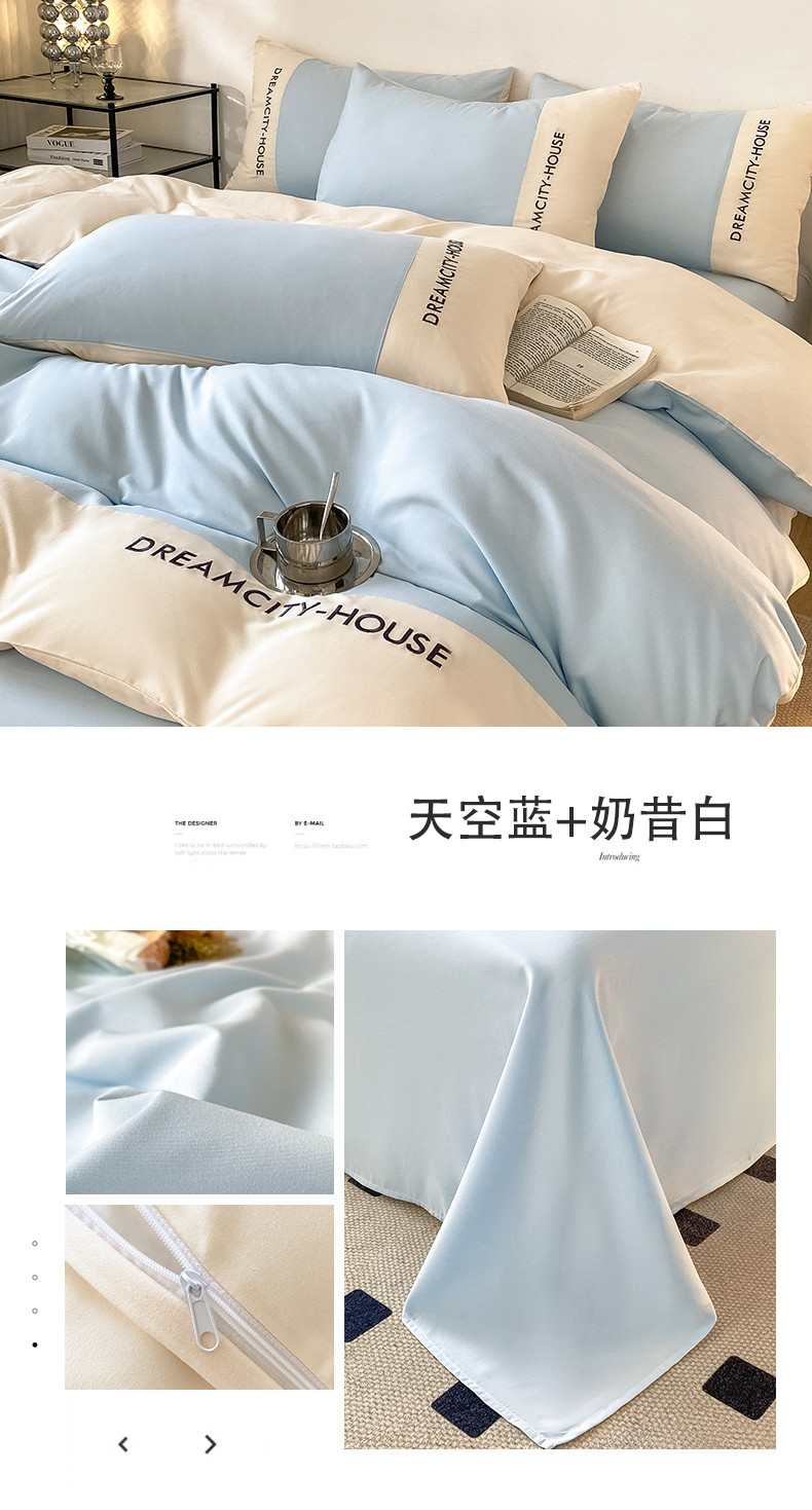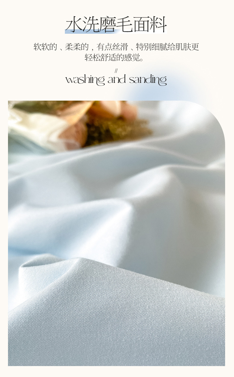 当前位置: 91家纺网 > 商品网购 > 床品套件 > 四件套 > 普通磨毛四件套 > 盛秋家纺 2025新款思雅系列水洗磨毛双拼刺绣四件套 思雅-天空蓝+奶昔白