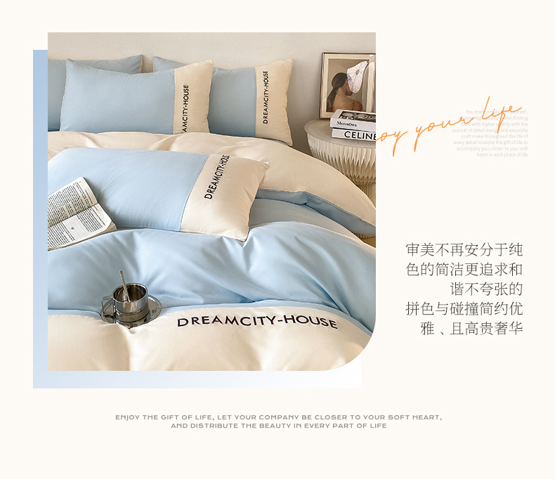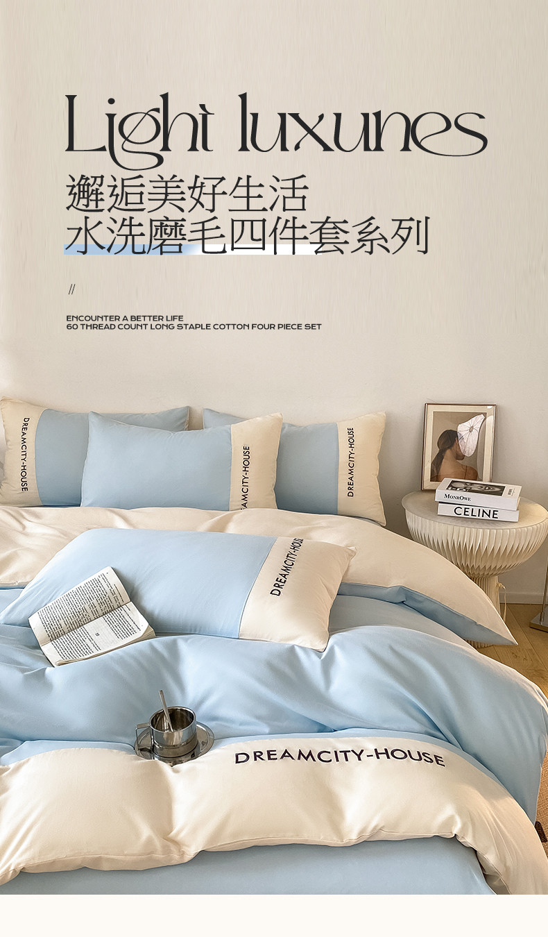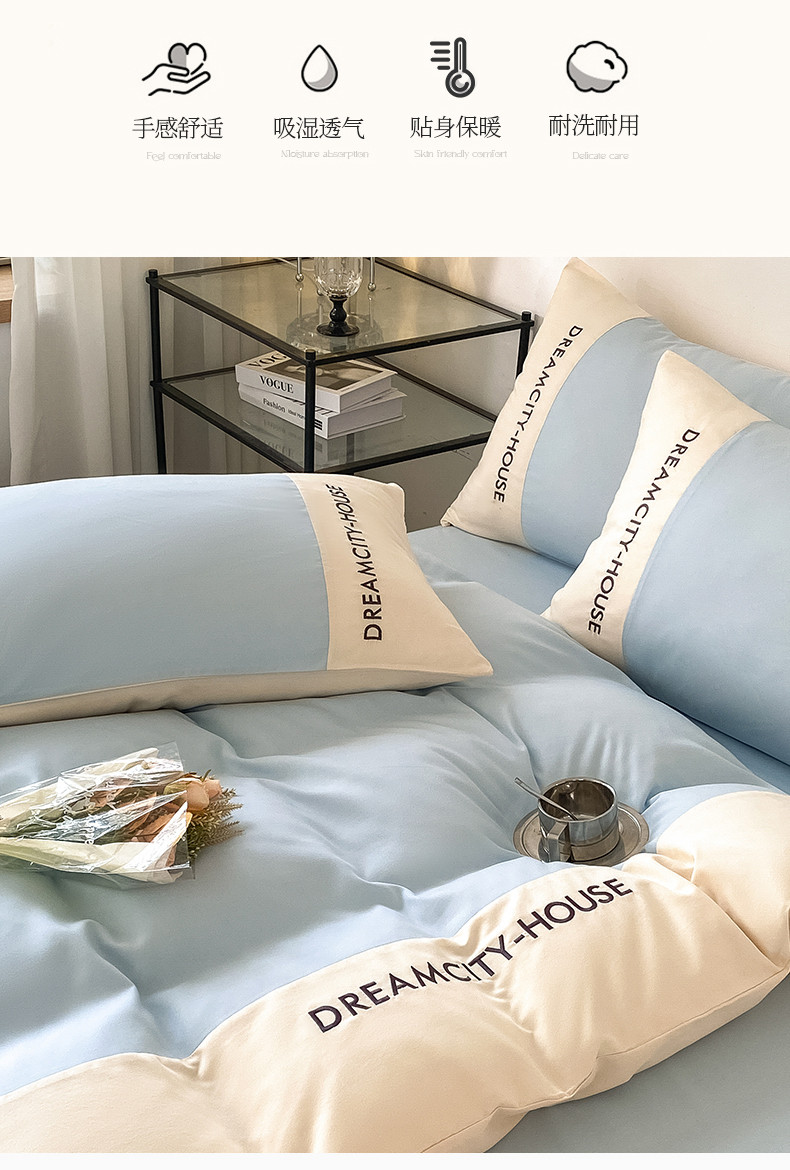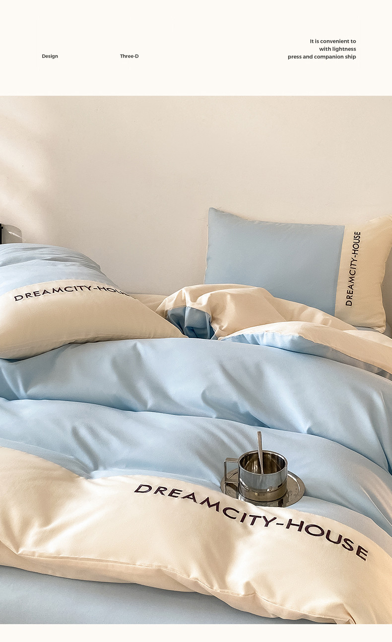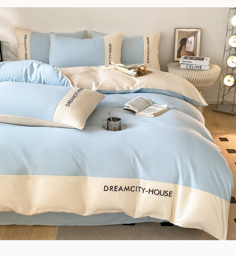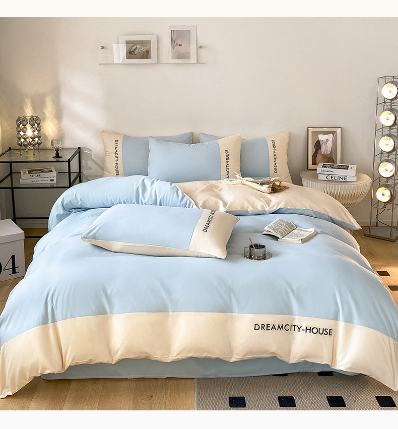 当前位置: 91家纺网 > 商品网购 > 床品套件 > 四件套 > 普通磨毛四件套 > 盛秋家纺 2025新款思雅系列水洗磨毛双拼刺绣四件套 思雅-天空蓝+奶昔白