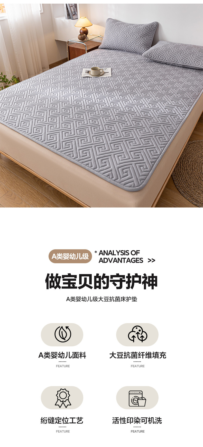 当前位置: 91家纺网 > 商品网购 > 床垫/床褥 > 普通床垫 > 芬晴家纺 2023新款A类大豆抗菌床护垫 流星-星灰