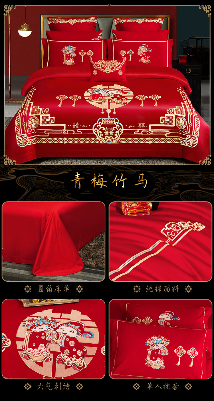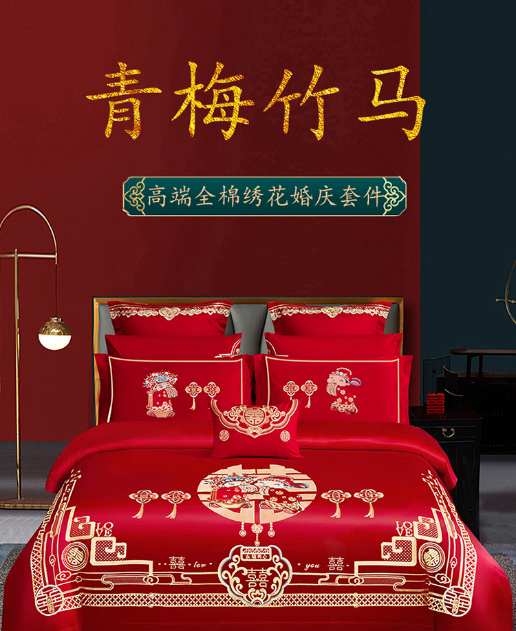 当前位置: 91家纺网 > 商品网购 > 床品套件 > 多件套 > 多件套 > 蒂爵 全棉纯棉原版重绣超大花绣花婚庆四件套多件套 青梅竹马