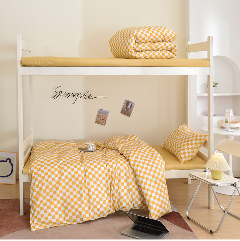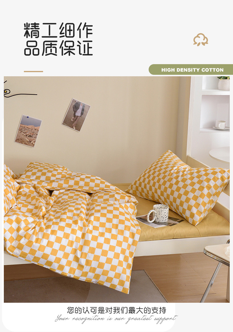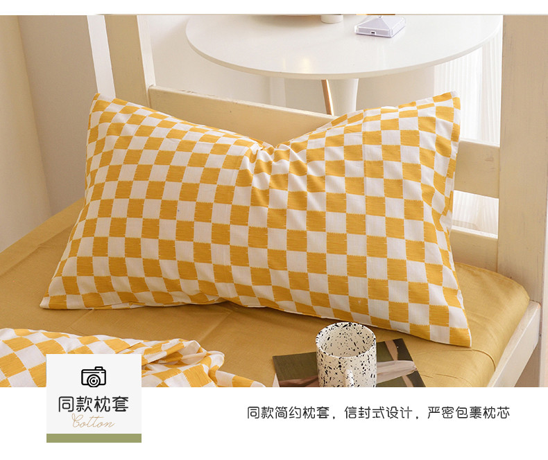 当前位置: 91家纺网 > 商品网购 > 床品套件 > 四件套 > 全棉普通四件套 > 麦伦 2023春夏全棉斜纹学生三件套四件套上下铺床品系列 棋盘格黄