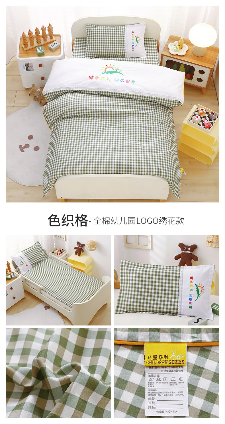 当前位置: 91家纺网 > 商品网购 > 床品套件 > 多件套 > 多件套 > 订做纯色绣花logo纯棉刺绣园标幼儿园被子三件套午睡六件套 色织格