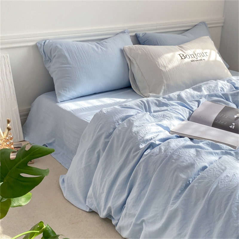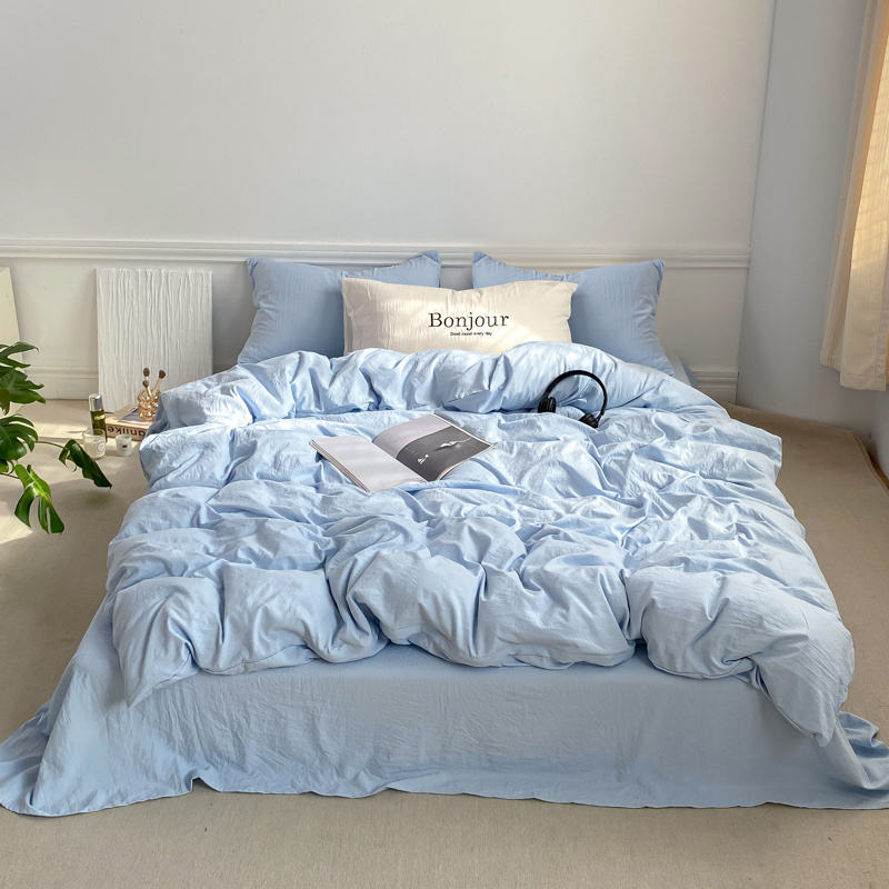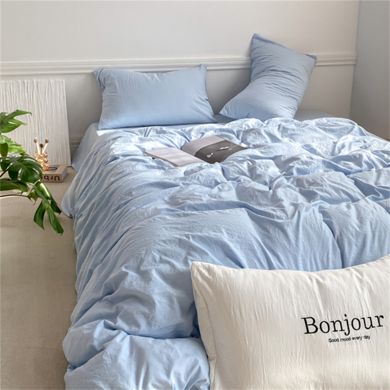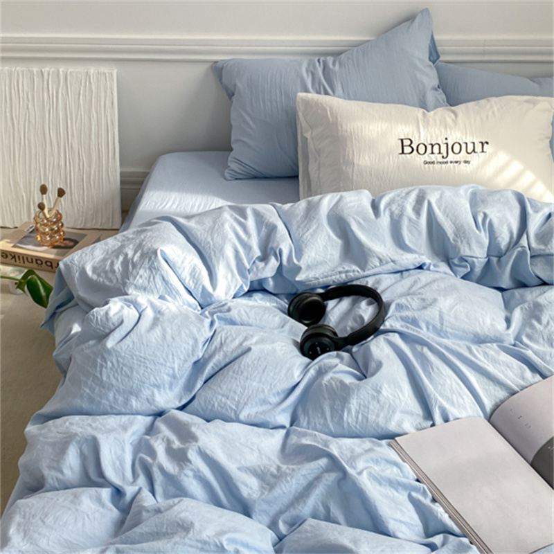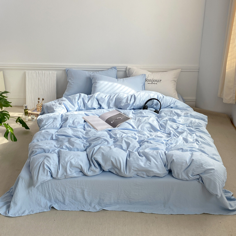 (总)雨帆 2023新款简约纯色水洗棉四件套,暗紫,高级灰,藕粉,浅咖,浅绿,天空蓝