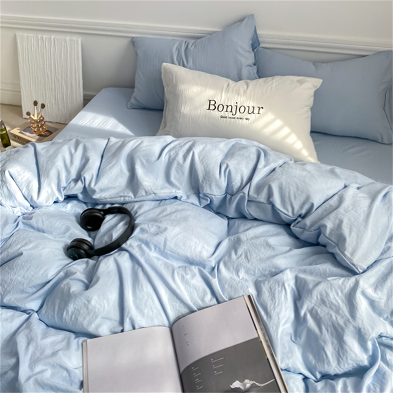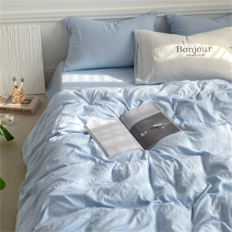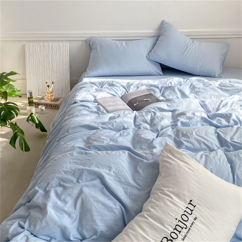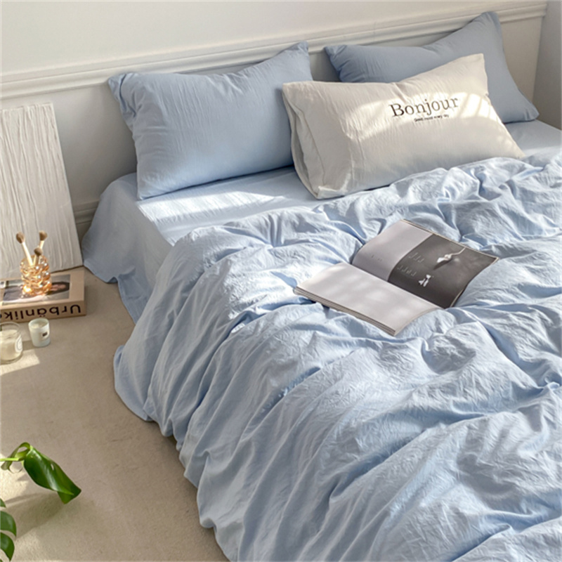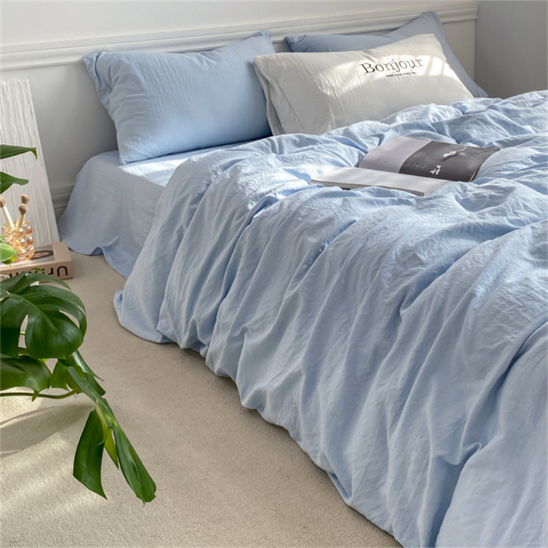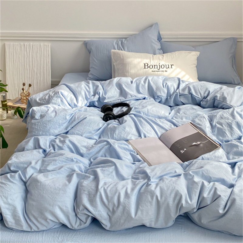 (总)雨帆 2023新款简约纯色水洗棉四件套,暗紫,高级灰,藕粉,浅咖,浅绿,天空蓝