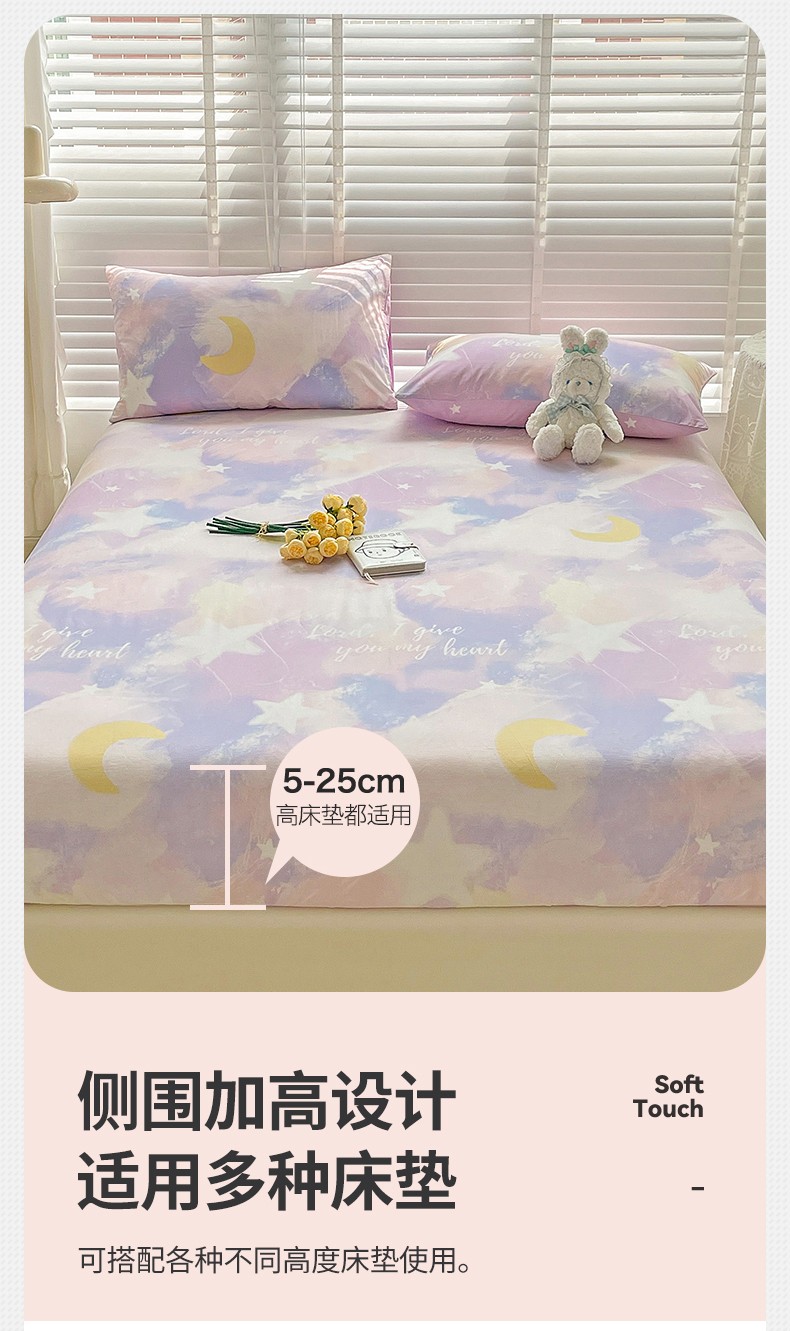 • 91家纺网 家纺一手货源 找家纺 名兮 2023新款全棉印花床笠 紫色星空
