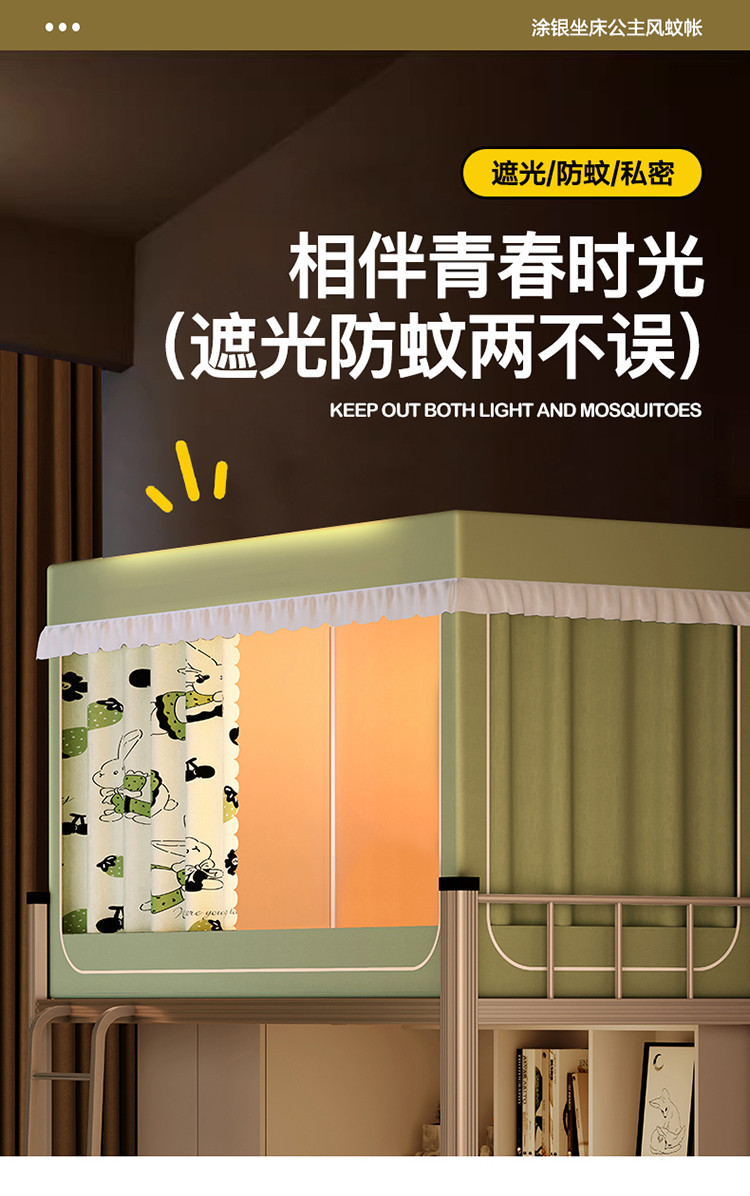 商品名称:青竹苑 2023新款强遮光涂银公主风学生蚊帐 萌小兔