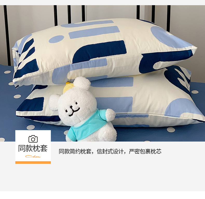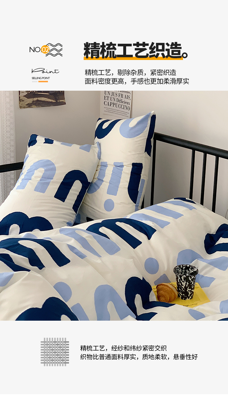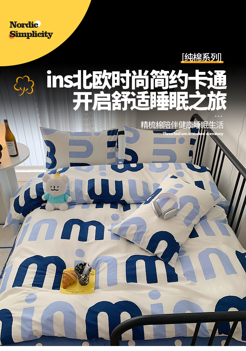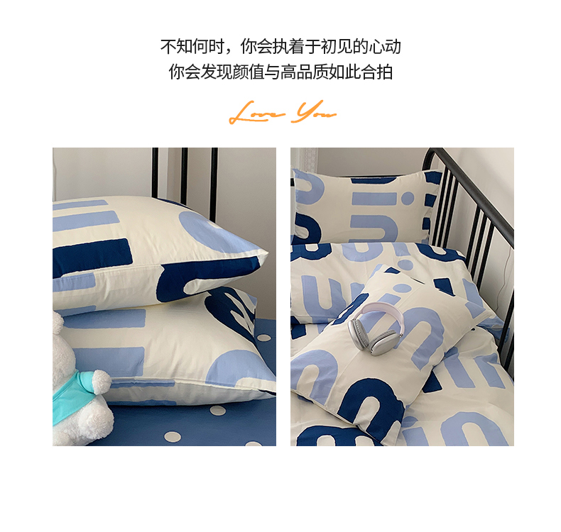 桃子家居 2023新款ins北欧时尚简约卡通纯棉四件套系列 棉-蓝色字母