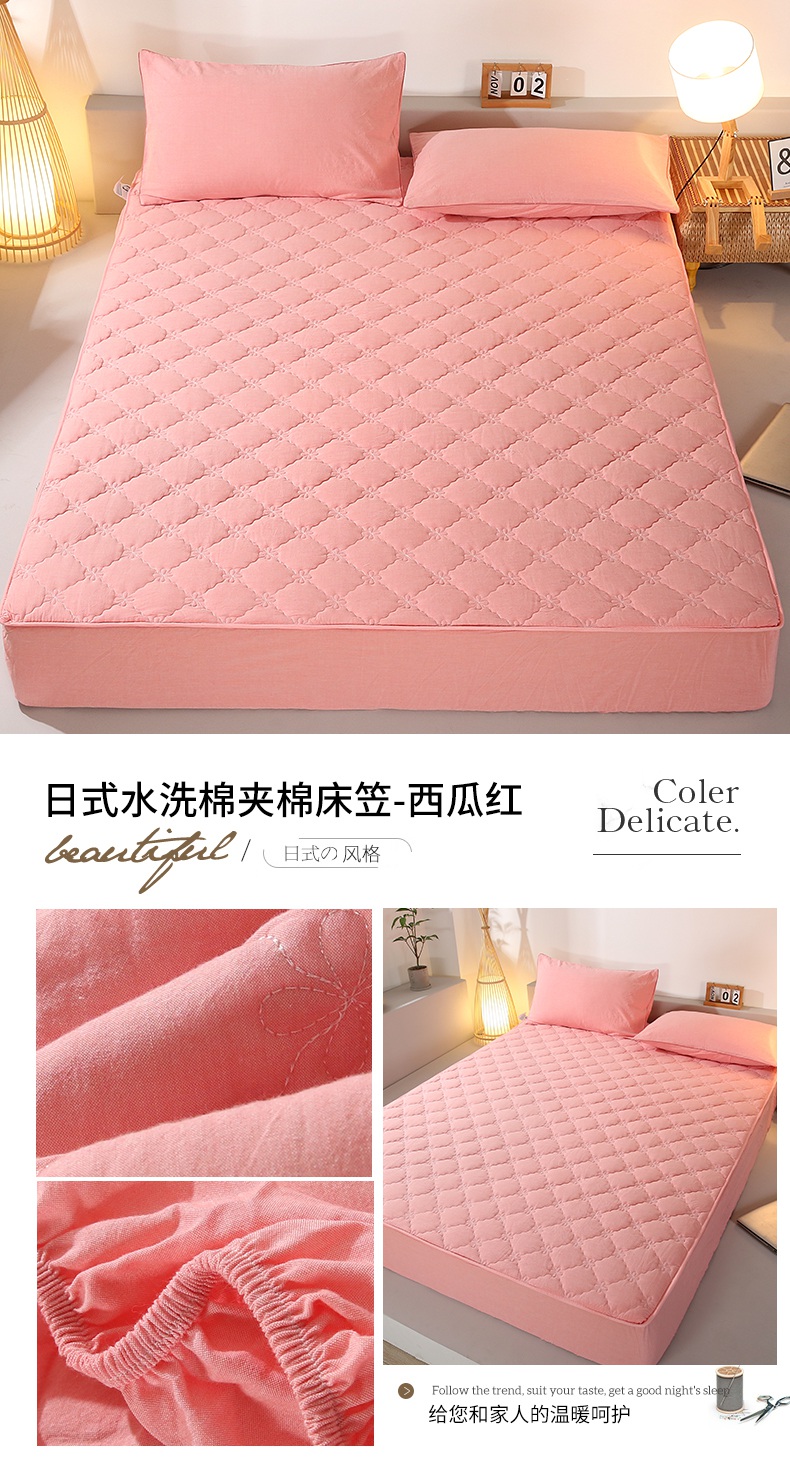 胜权家纺 2024新款日式全棉色织水洗棉夹棉床笠 西瓜红