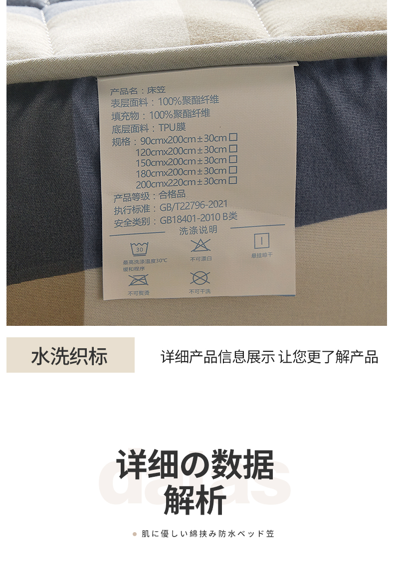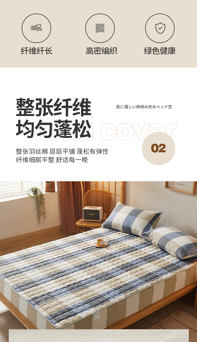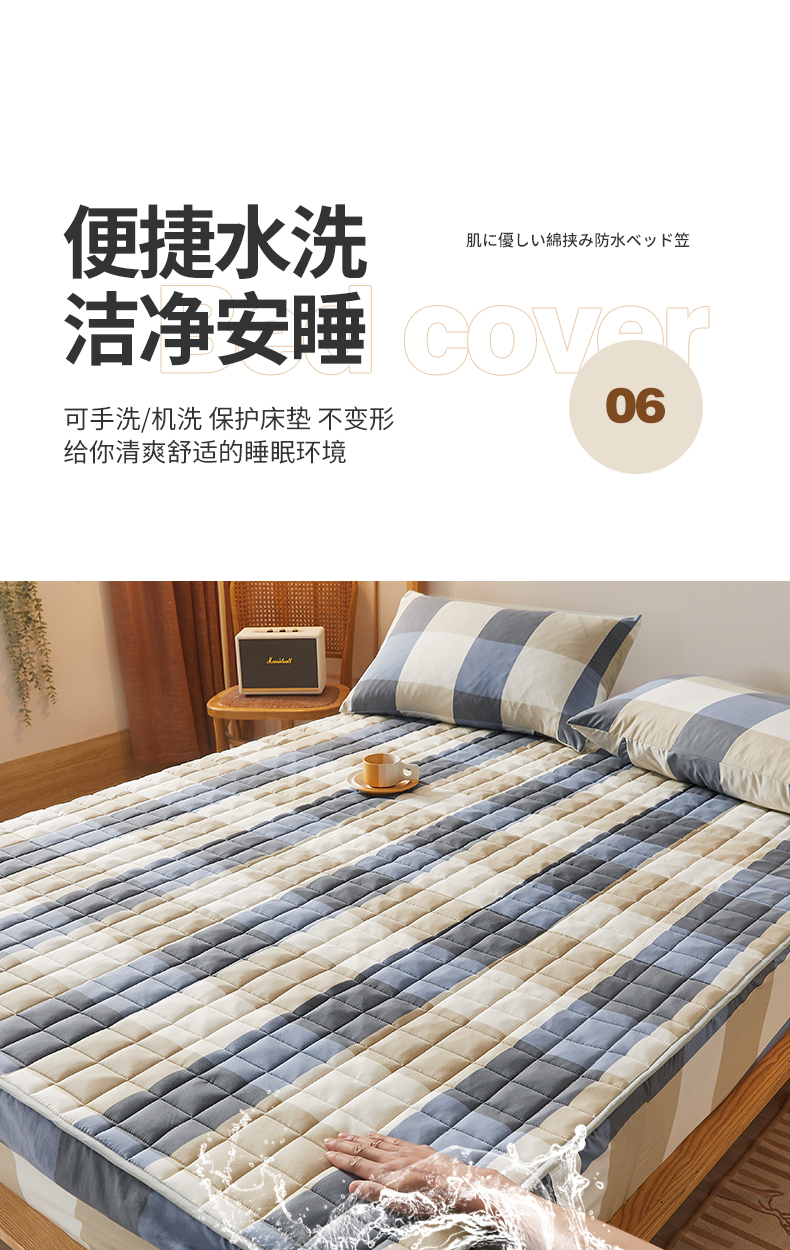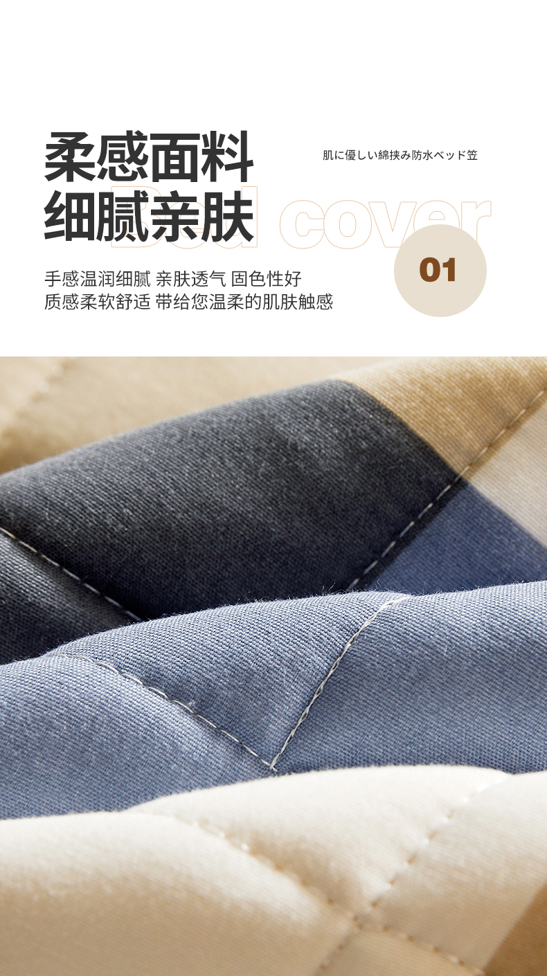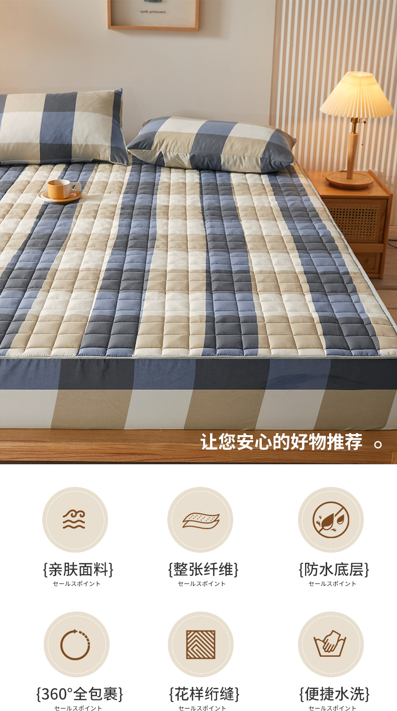 • 91家纺网 家纺一手货源 找家纺 胜权家纺 2024新款亲肤夹棉格子防水床笠 蓝大格