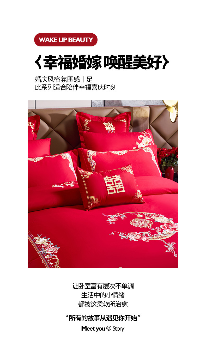 (总)千禧家纺 2024新款双面长绒棉磨毛加厚保暖绣花婚庆套件,大喜大吉,鸿运贺禧,欢乐喜事,欢喜,美满爱情,喜上眉梢,喜约,相伴一生,挚爱