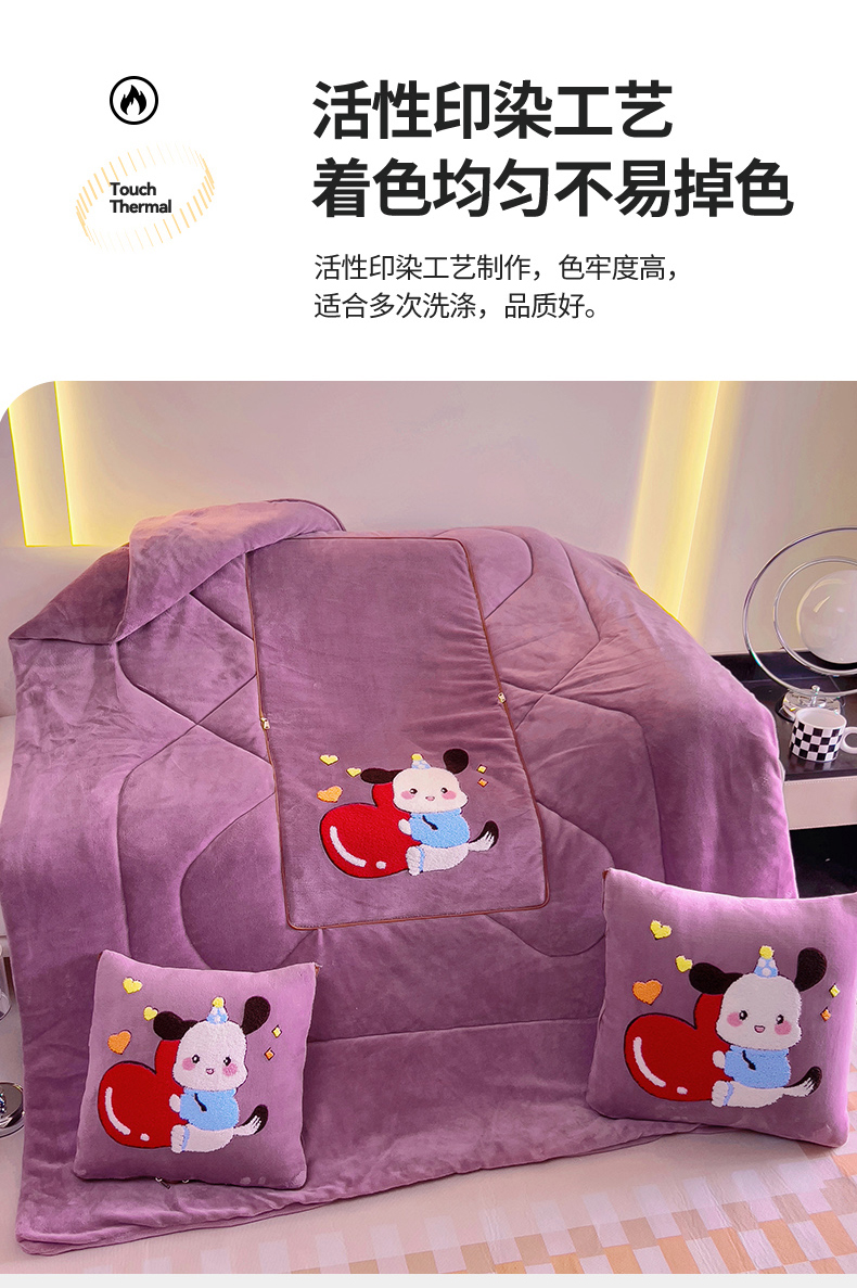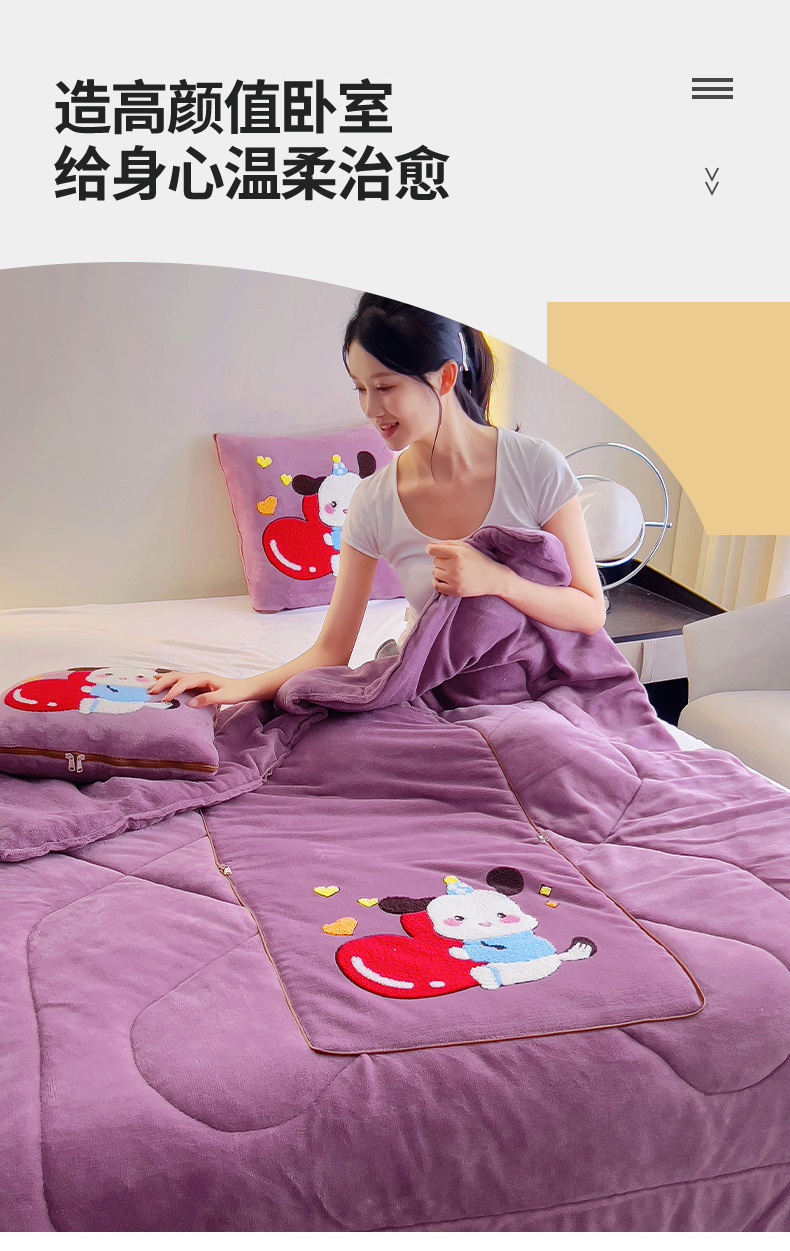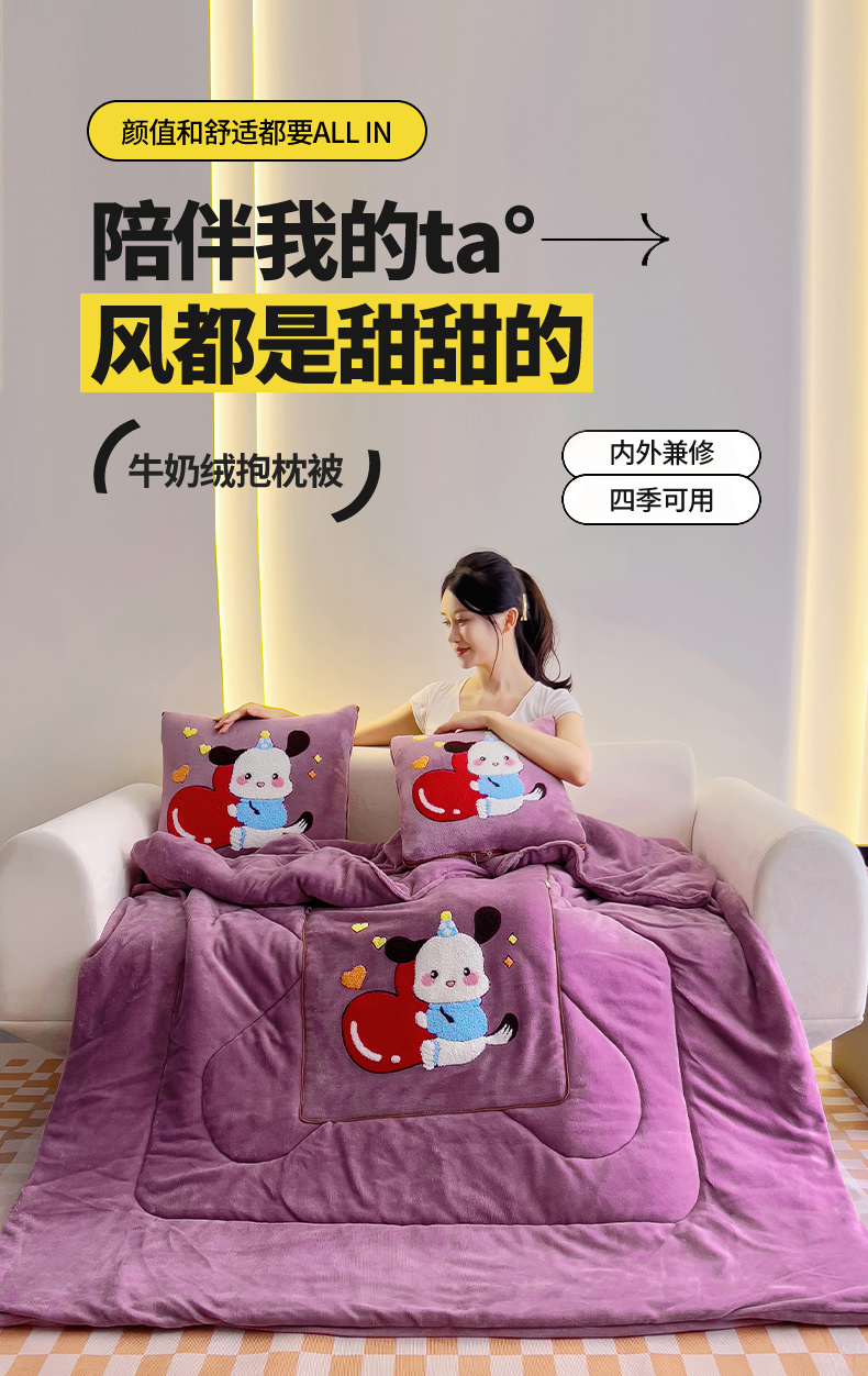 商品名称:阳光依佰 2023新款牛奶绒毛巾绣秋冬加厚抱枕被 紫色