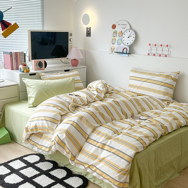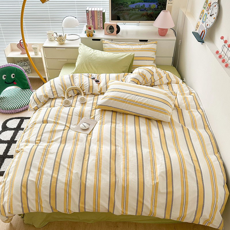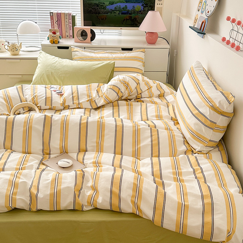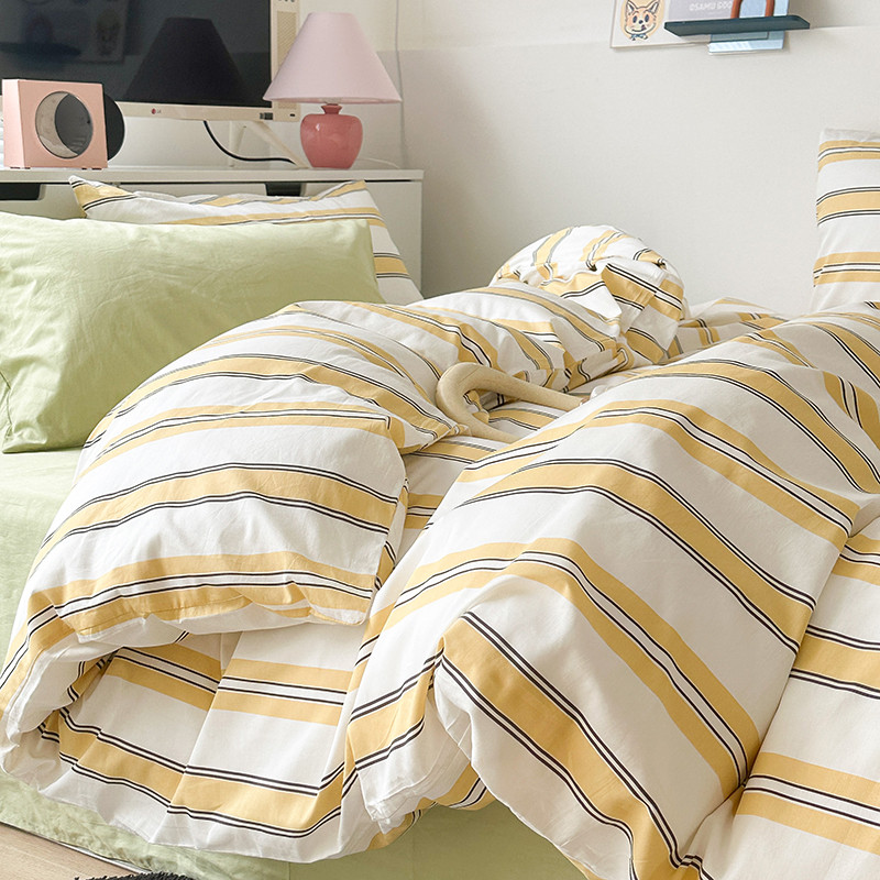 昔可 2023新款全棉ins格子混搭系列四件套芝士黄条