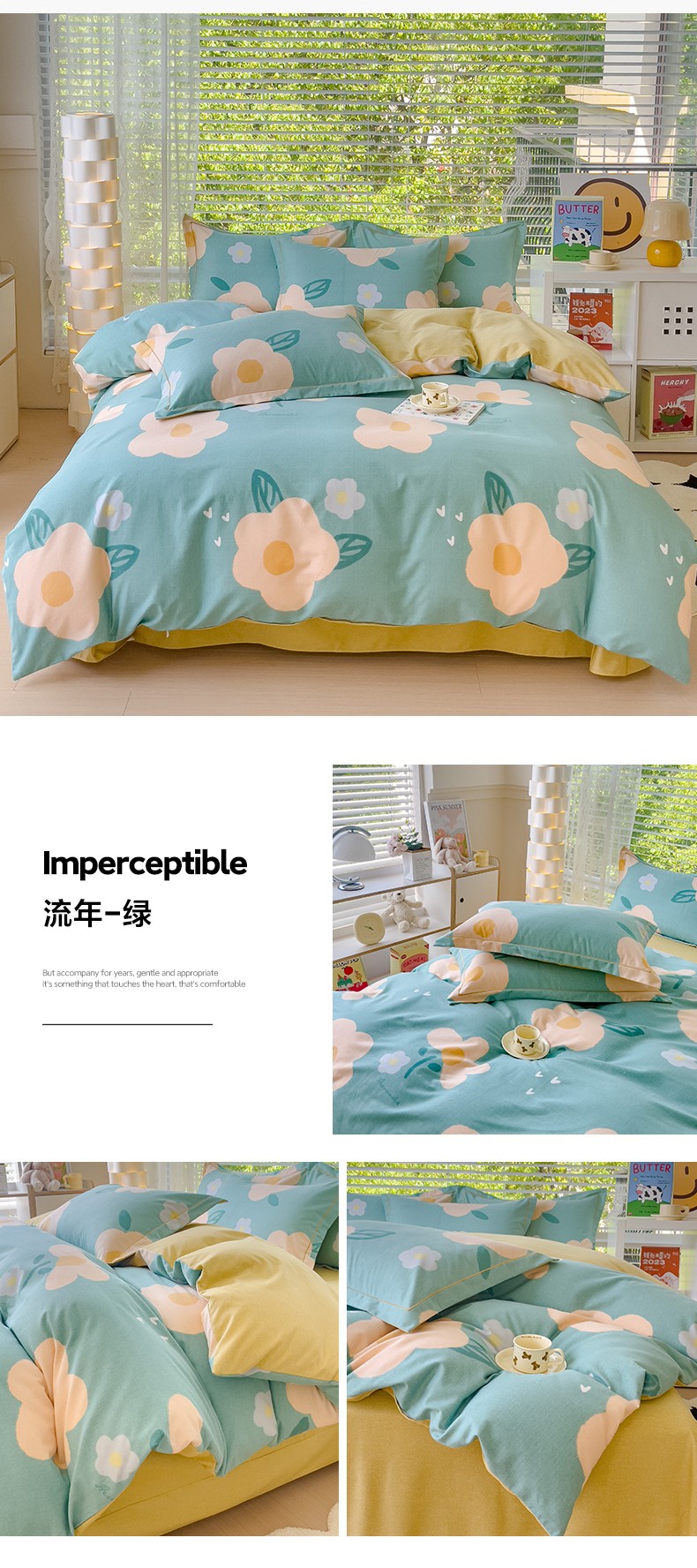 商品名称:铭浩 2025新款纯棉棉加厚磨毛升级喷气面料全棉四件套三件套 流年-绿