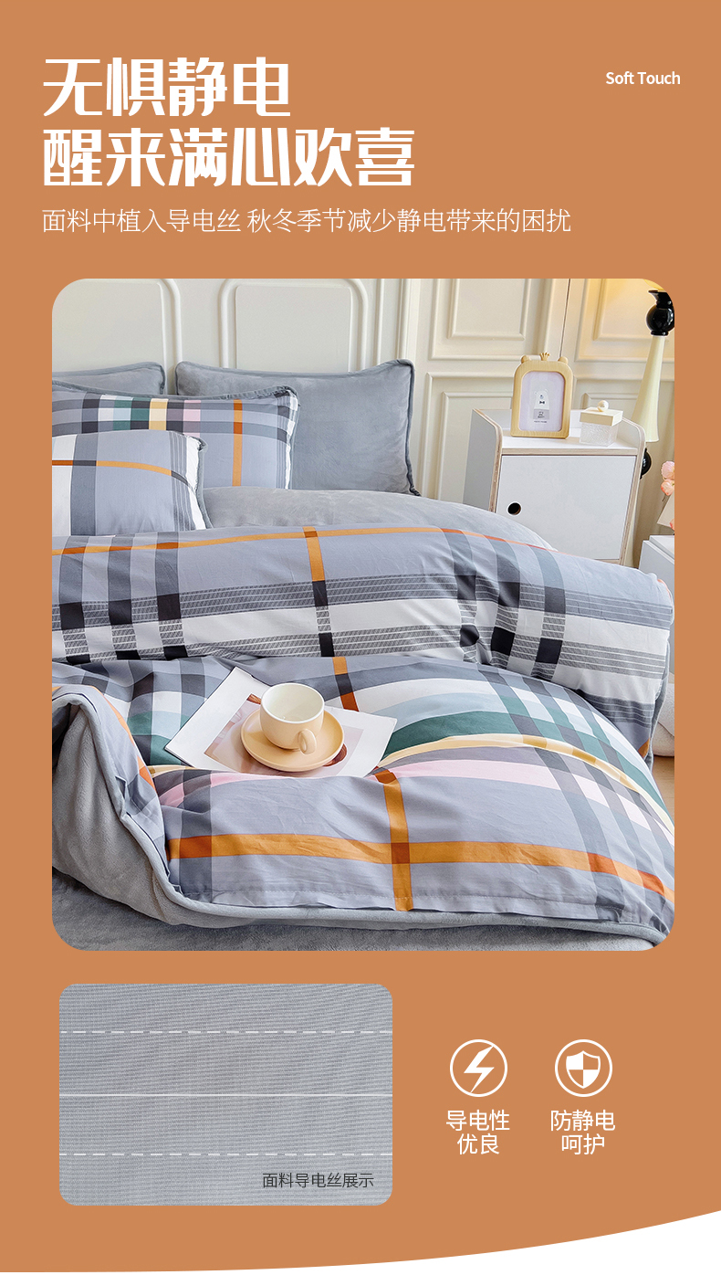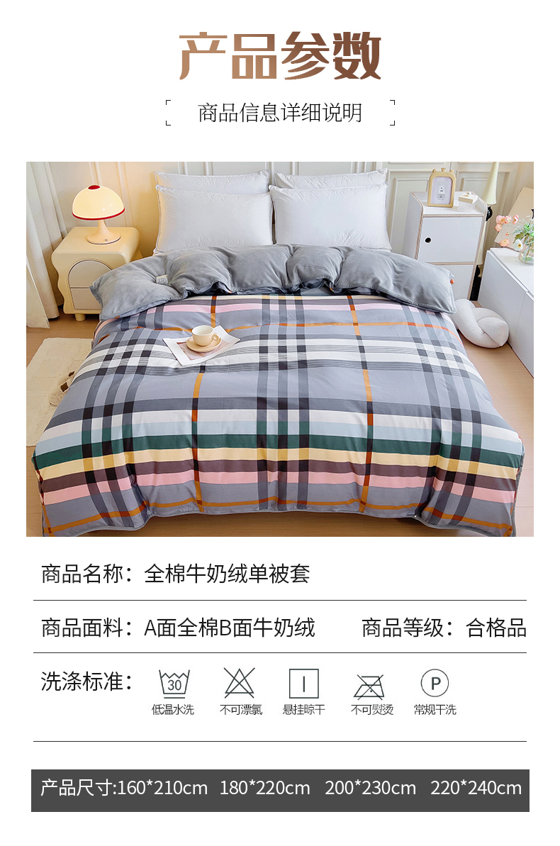 商品名称:琪琪阁 2023新款全棉加牛奶绒单被套 简约人生