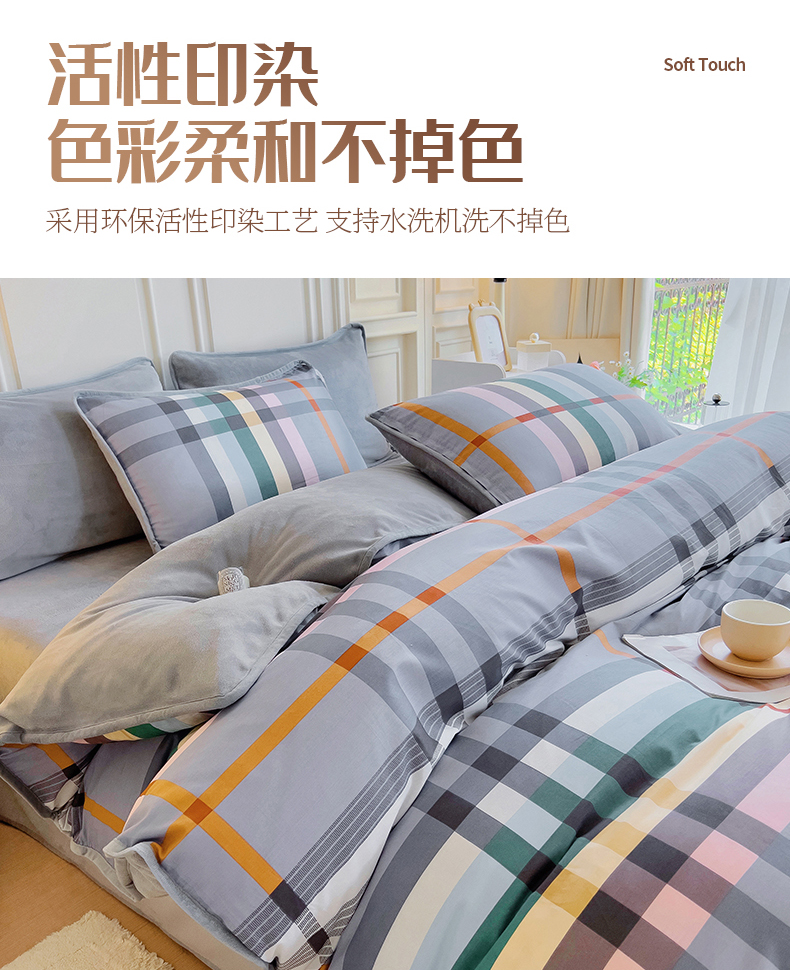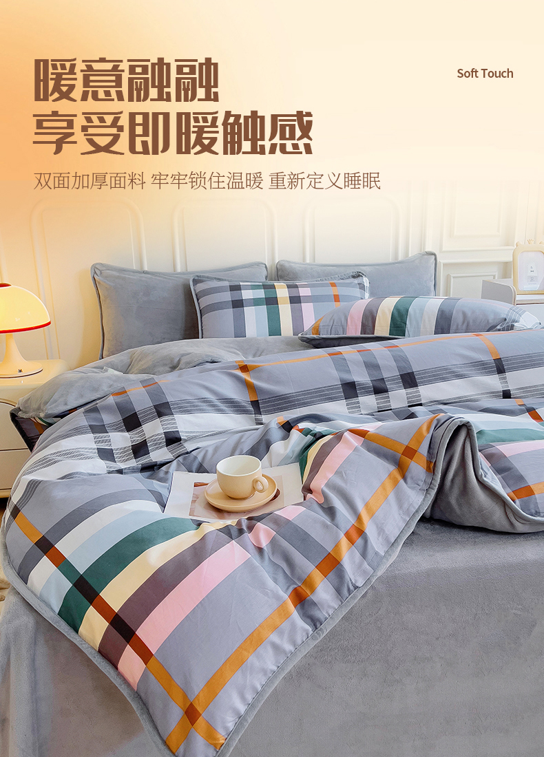 琪琪阁 2023新款A棉B绒棉加绒牛奶绒四件套单被套 宁静生活,宁静生活