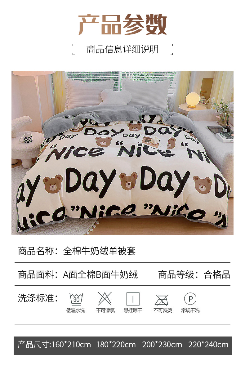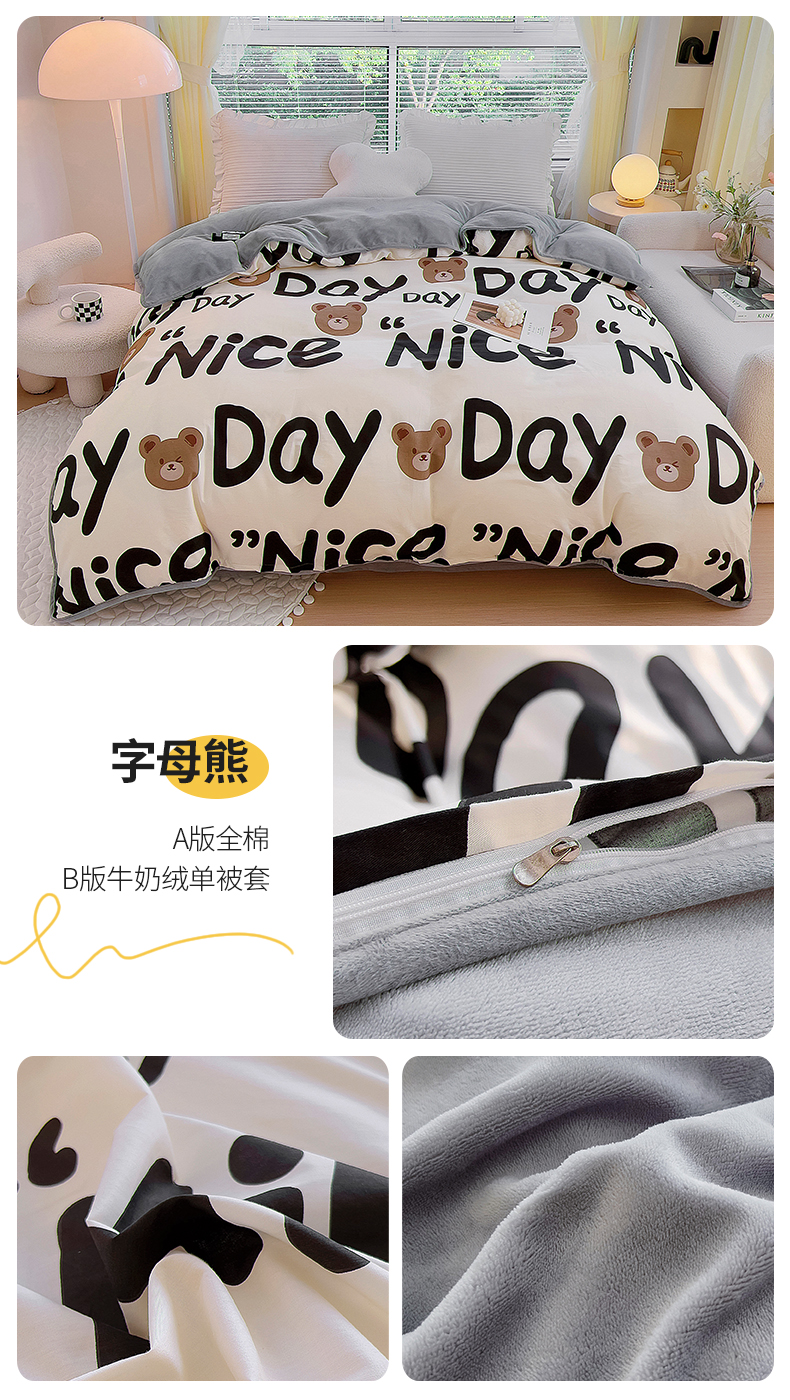 商品名称:琪琪阁 2023新款全棉加牛奶绒单被套 字母熊