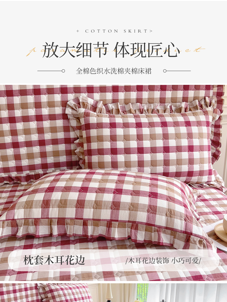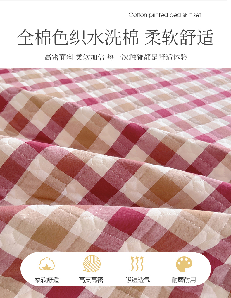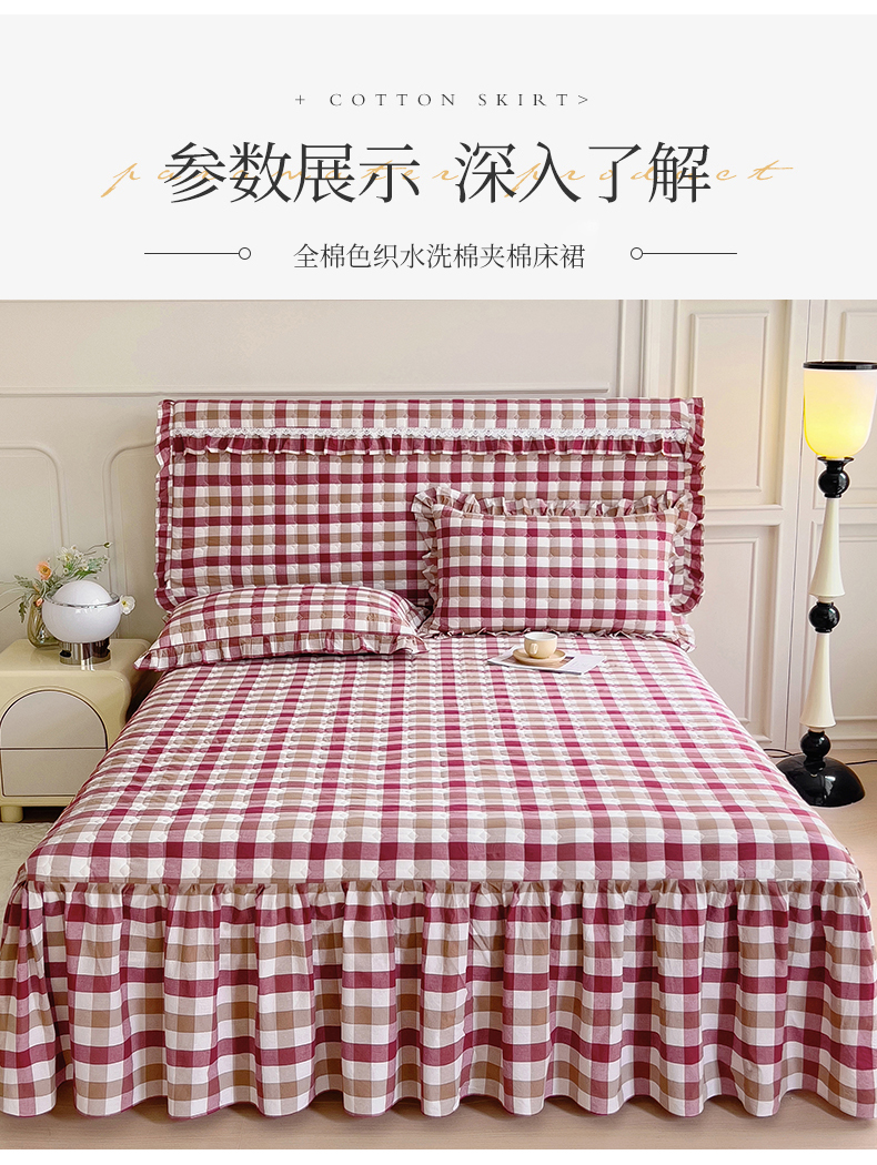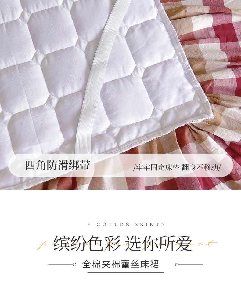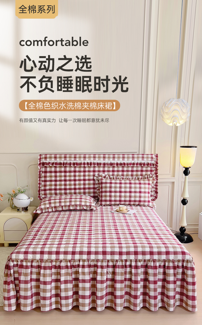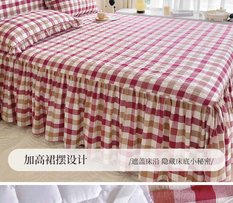 十个点 2024新款色织水洗棉-韵格系列单品夹棉床裙 七彩格红