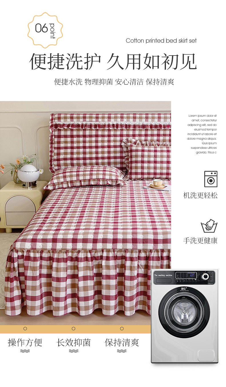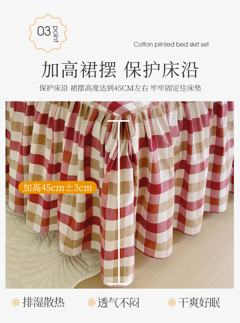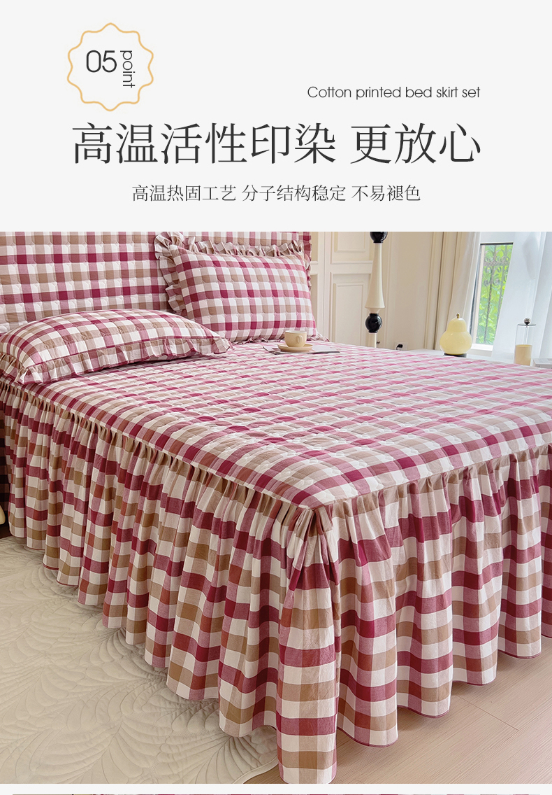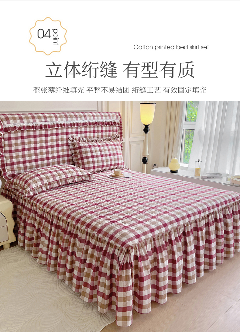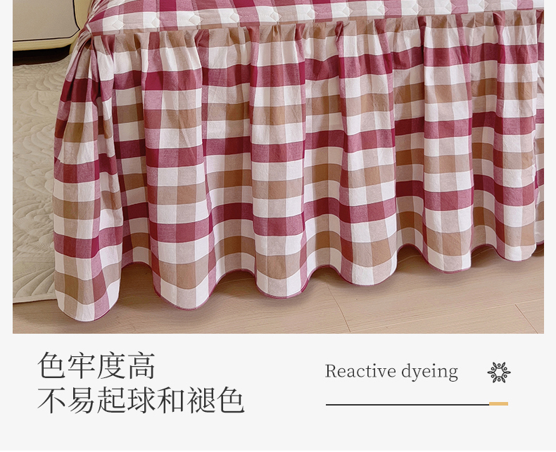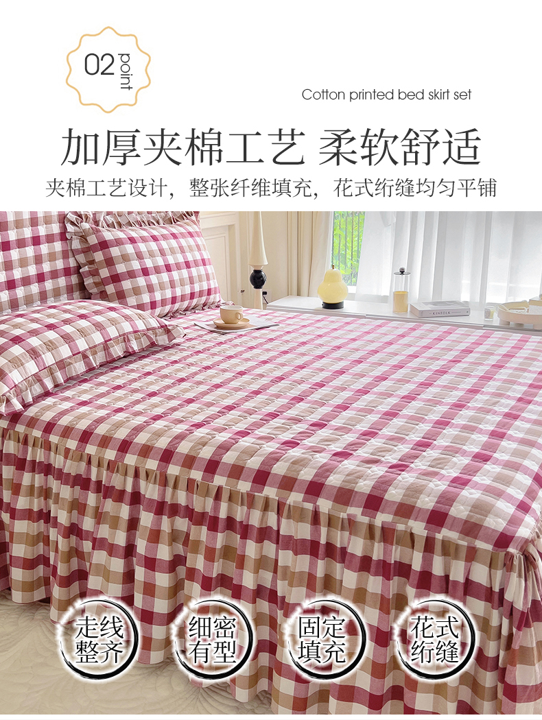 十个点 2024新款色织水洗棉-韵格系列单品夹棉床裙 七彩格红