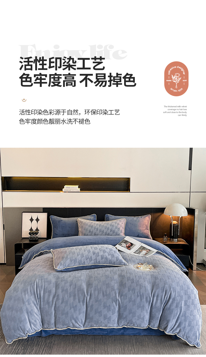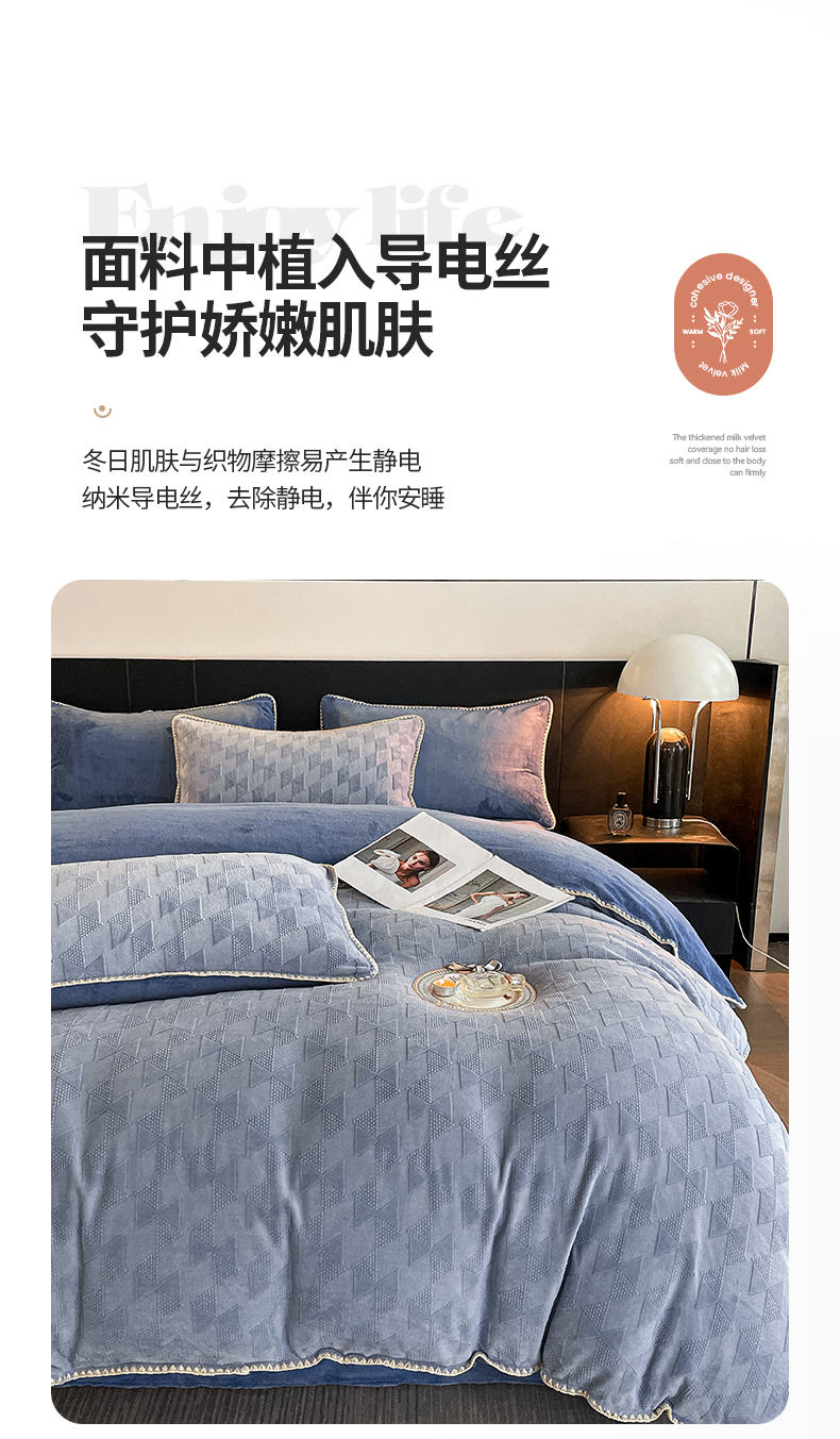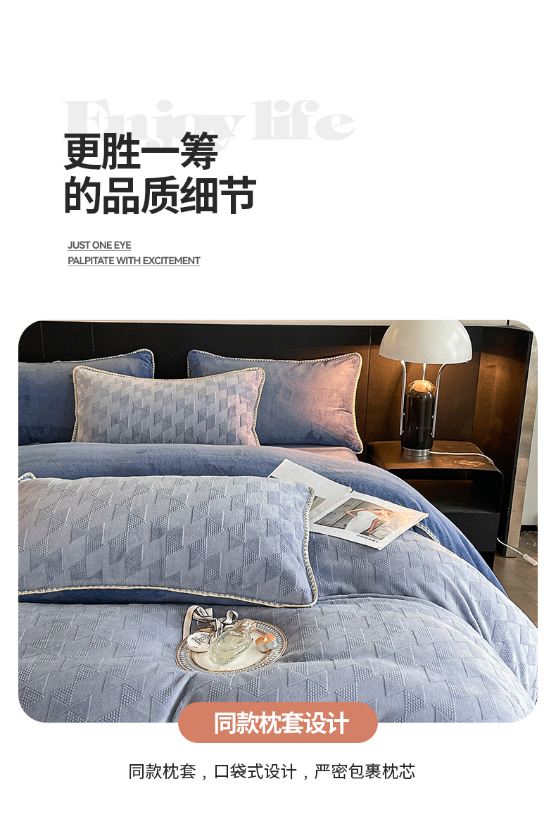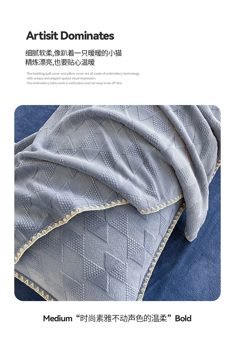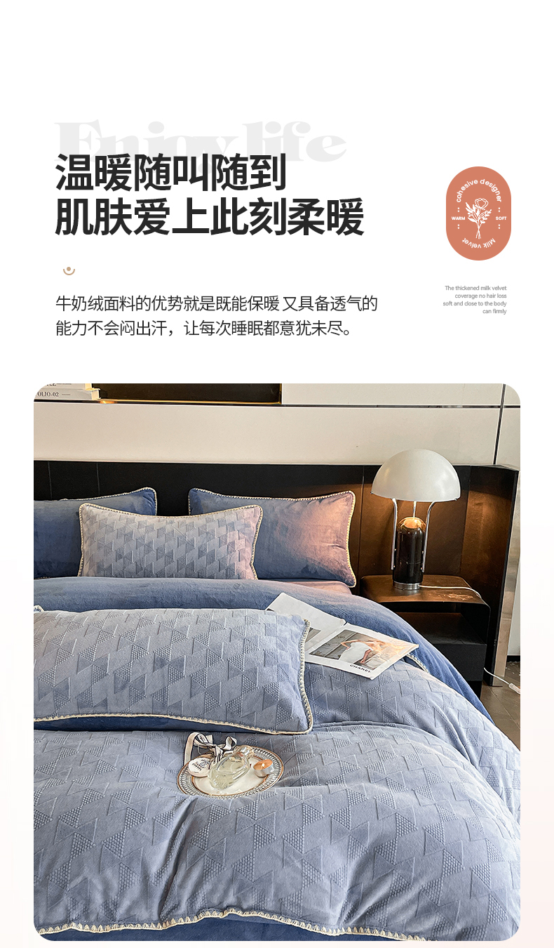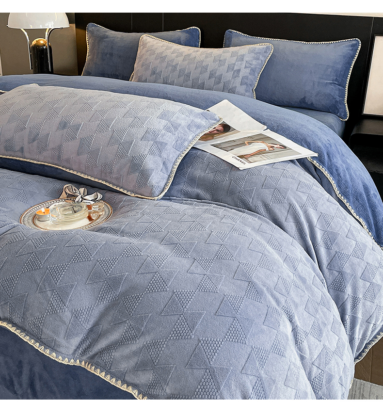 商品名称:澳梵 2023新款雕花牛奶绒贝壳边工艺四件套 威廉-雾霾蓝