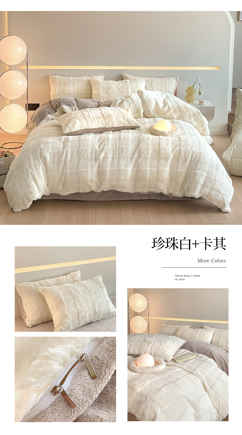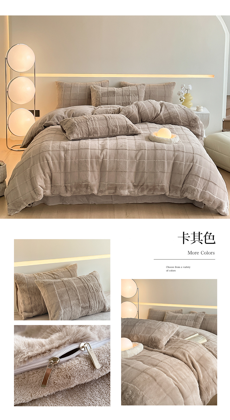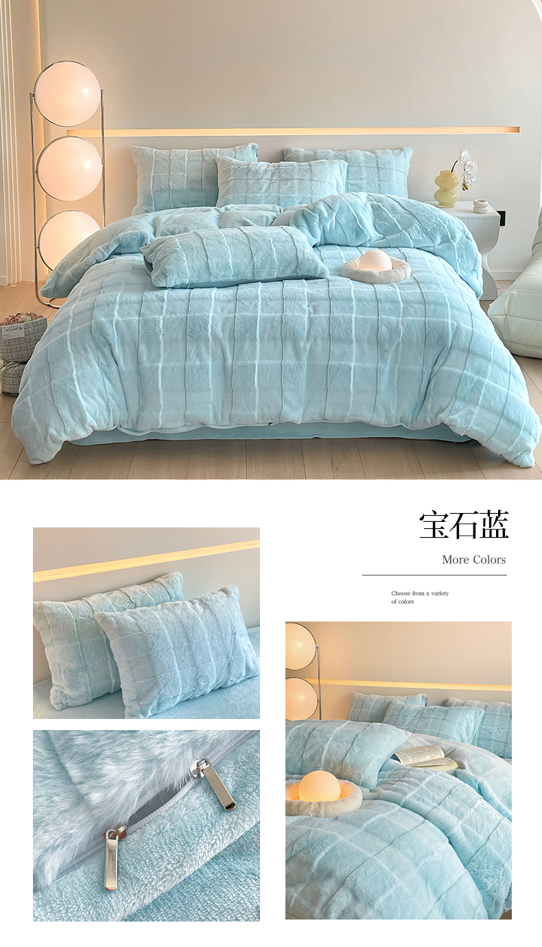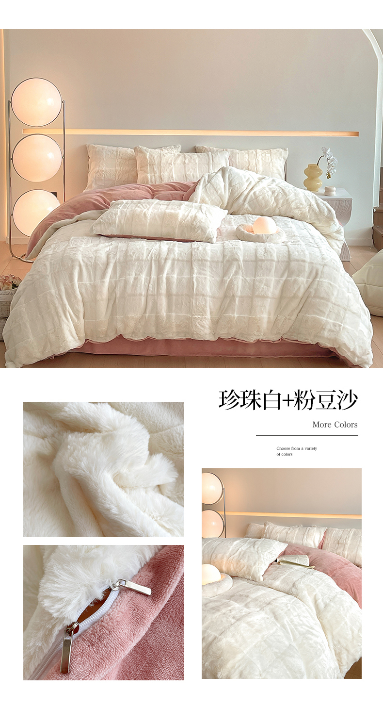 商品名称:汇总康纳利新款纯色兔兔绒懒兔绒立体剪花牛奶绒兔毛绒四件套直播提供买家秀