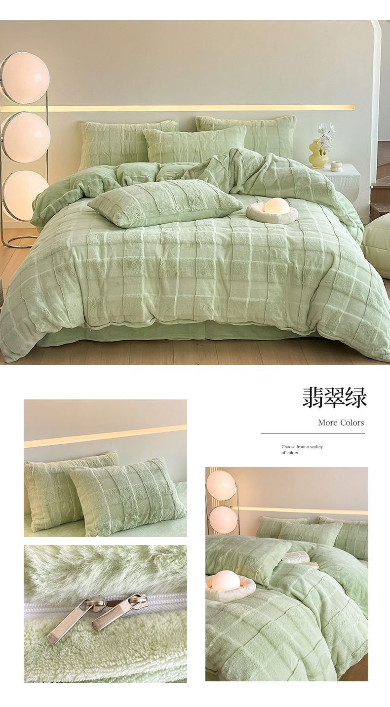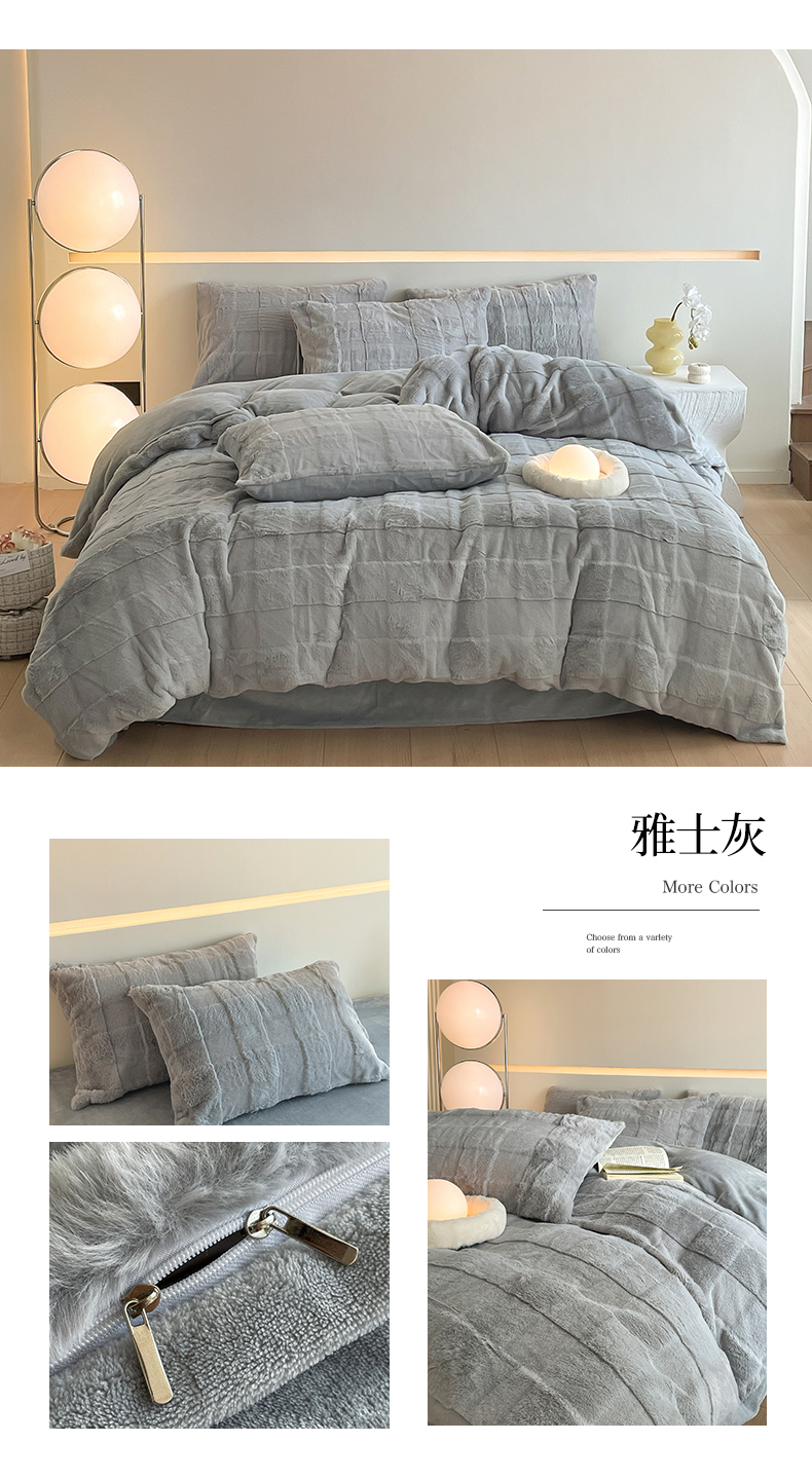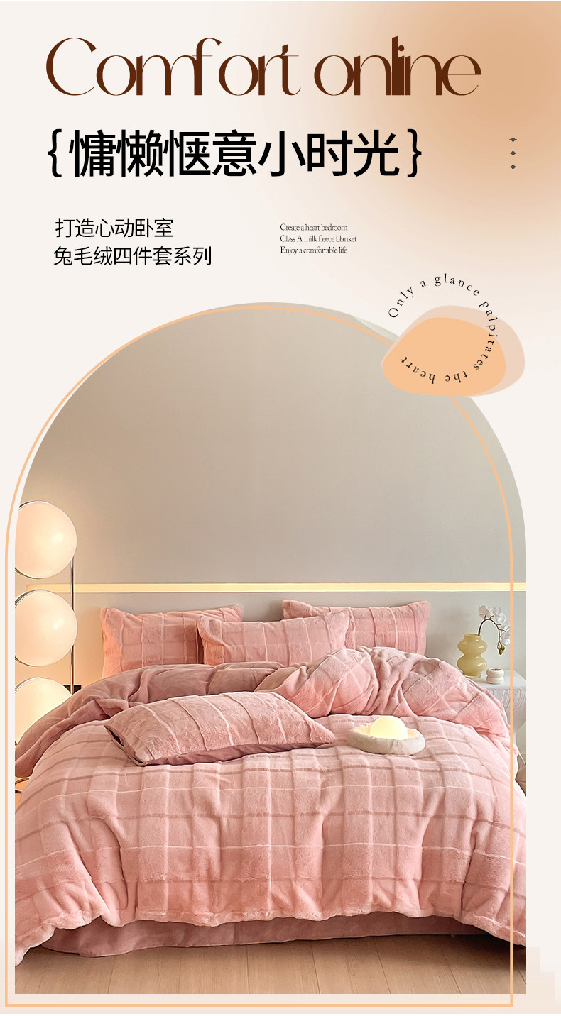 商品名称:汇总康纳利新款纯色兔兔绒懒兔绒立体剪花牛奶绒兔毛绒四件套直播提供买家秀