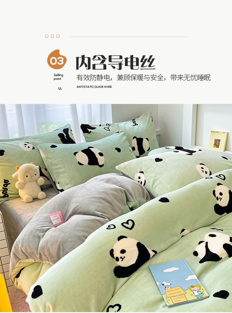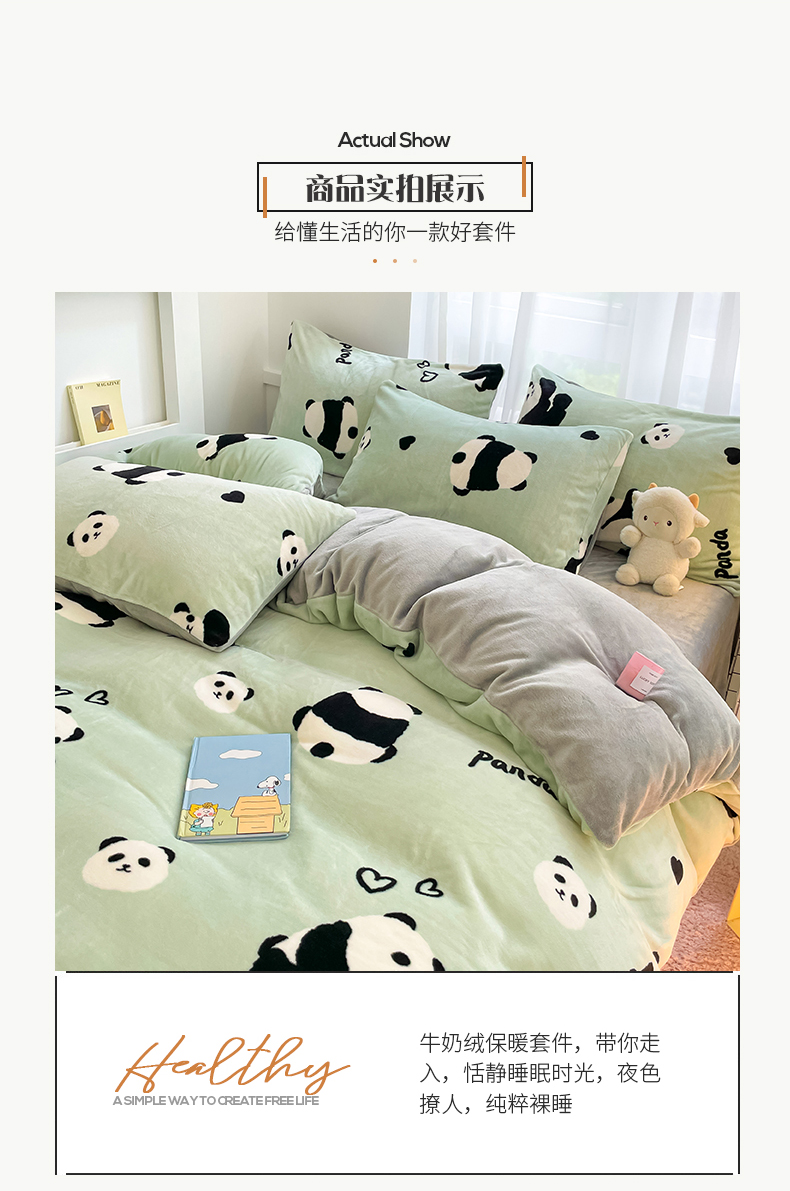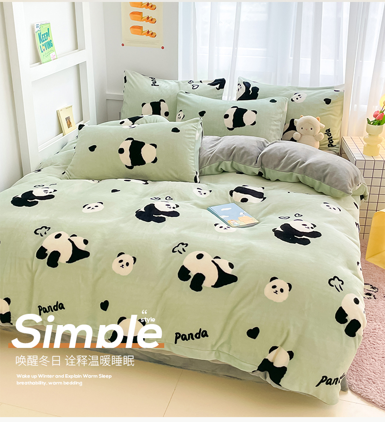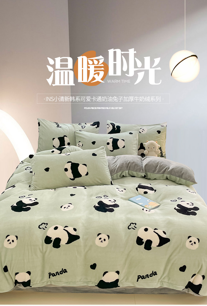 桃子 2023新款ins小清新韩系可爱卡通奶油兔子加厚牛奶绒系列四件套详情第三批 绒-绿萌熊猫