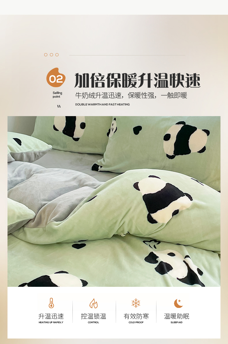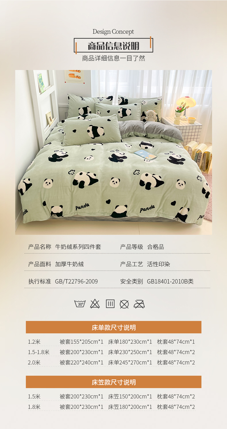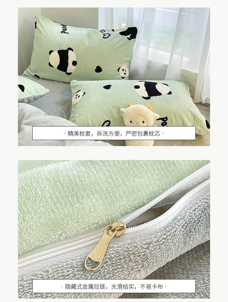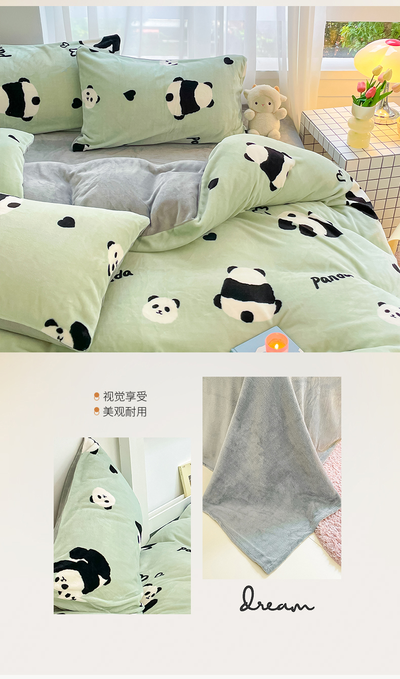 商品名称:桃子 2023新款ins小清新韩系可爱卡通奶油兔子加厚牛奶绒系列四件套详情第三批 绒-绿萌熊猫