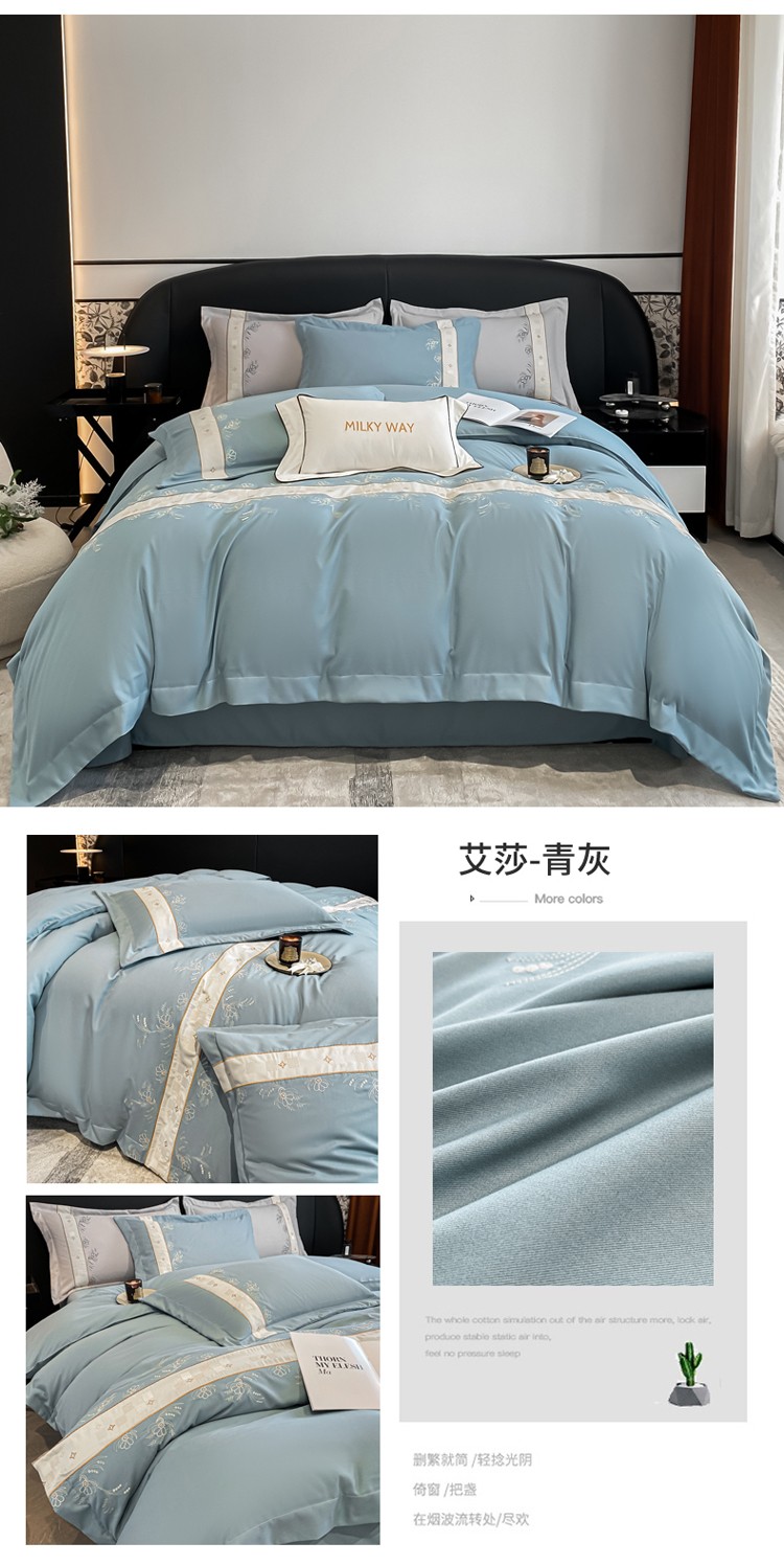 (总)欧冠 2023新款秋冬保暖锦绣棉简约绣花艾莎系列四件套