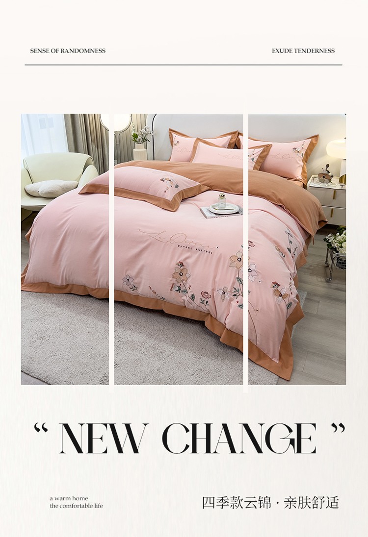欧冠 2023新款秋冬保暖云锦棉刺绣宽边盛夏光年系列四件套 盛夏光年-玉色