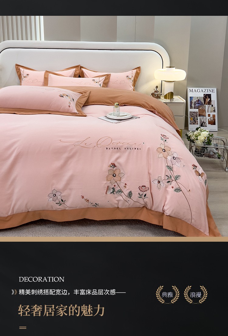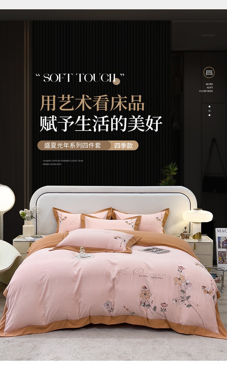商品名称:欧冠 2023新款秋冬保暖云锦棉刺绣宽边盛夏光年系列四件套 盛夏光年-玉色
